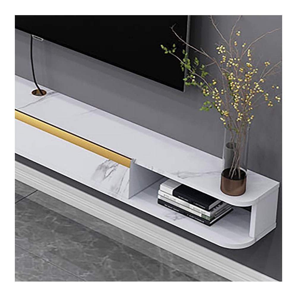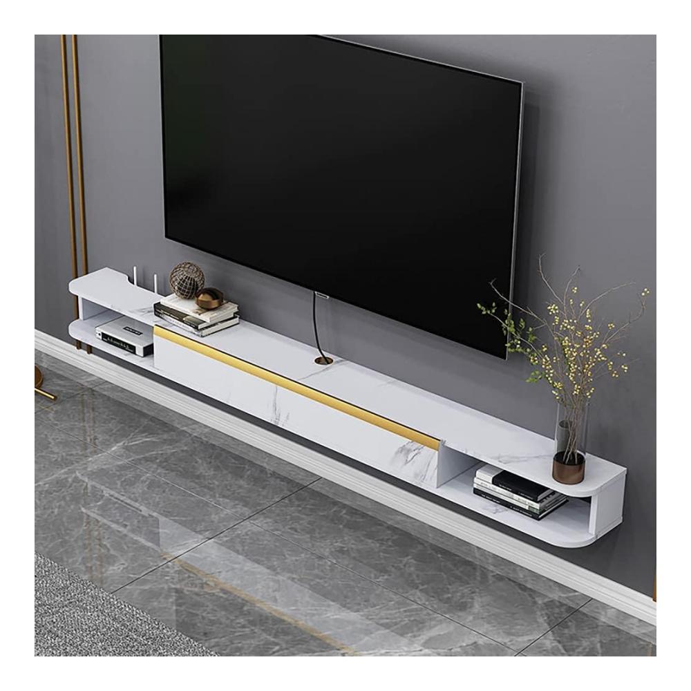 Unser schmaler Fernsehschrank in Weiß bietet stilvolle und funktionale Aufbewahrungslösungen für Ihr Wohn- und Schlafzimmer. Hergestellt aus ökologischem Massivholz, ist er robust und sicher. Die abgerundeten Ecken verleihen ihm eine exquisites Aussehen, während das goldene Kabelloch eine praktische Ergänzung ist. Die stabilen Scharniere gewährleisten Langlebigkeit. Mit einer großen Schublade und zwei offenen Aufbewahrungsbereichen bietet er Platz für Geräte wie WLAN-Router und Set-Top-Boxen, ohne das Signal zu stören.