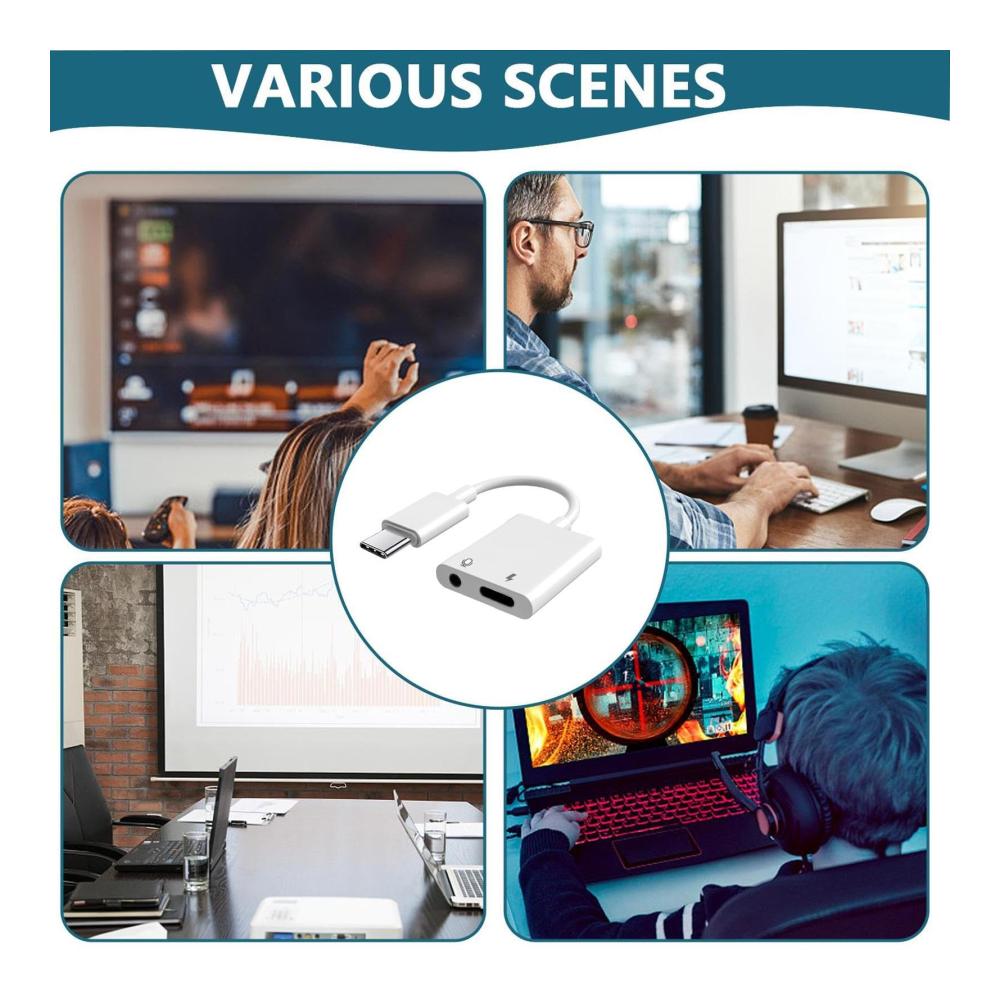 Kompatible Verbindung: Dieser 2-in-1-Kopfhöreradapter vom Typ C ist die perfekte Audiolösung für alle elektronischen Geräte mit einem Typ-C-Anschluss, einschließlich Laptops, Tablets und Smartphones.