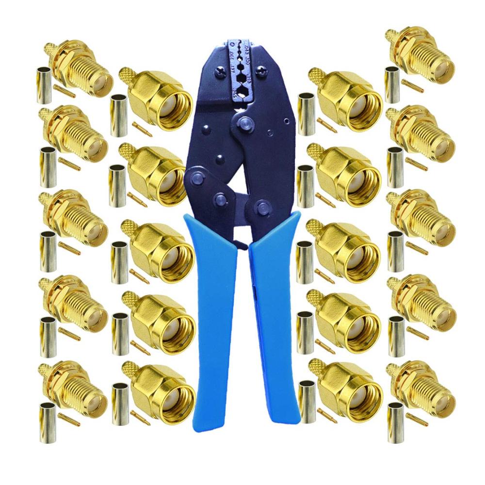 5. SMA crimp-set inklusive 10er-pack SMA stecker und buchse für RG174 RG316 RG188,1 stück Koaxial crimpzange und abisolierzange für SMA BNC.