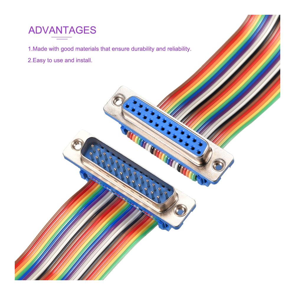ANWENDUNG: 1. Perfekt für elektronische Projekte und kann verwendet werden, um verschiedene Komponenten zu verbinden. 2. DIY-Elektronik, Hobbyprojekte, Prototyping und mehr, wie Sensoren, Motoren, LED-Leuchten.VORTEILE: 1. Hergestellt aus hochwertigen Materialien, die Langlebigkeit und Zuverlässigkeit gewährleisten. 2. Einfach zu verwenden und zu installieren.LIEFERUMFANG: Produkt: Flachbandkabel; Pin-Anzahl: 25; Länge: 30cm; Gesamtbreite: 31,8mm; Pin-Abstand: 2,54 mm; Typ: DB25 Stecker auf Buchse; Farbe: RegenbogenfarbeHINWEIS: 1. Stellen Sie sicher, dass Sie die Pinbelegung korrekt abgleichen, um Ihre Elektronik nicht zu beschädigen. 2. Bei Verwendung dieses Produkts achten Sie bitte auf eine sorgfältige Handhabung.