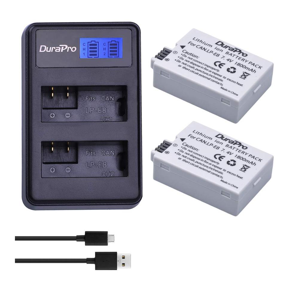 Package includes: 2X LP-E8 Batteries LED Dual USB Charger Micro Cable Manual 30days Money Back; Any Questions, Please contact us.