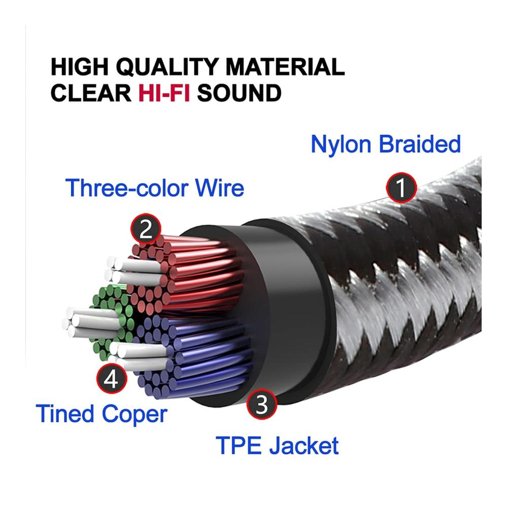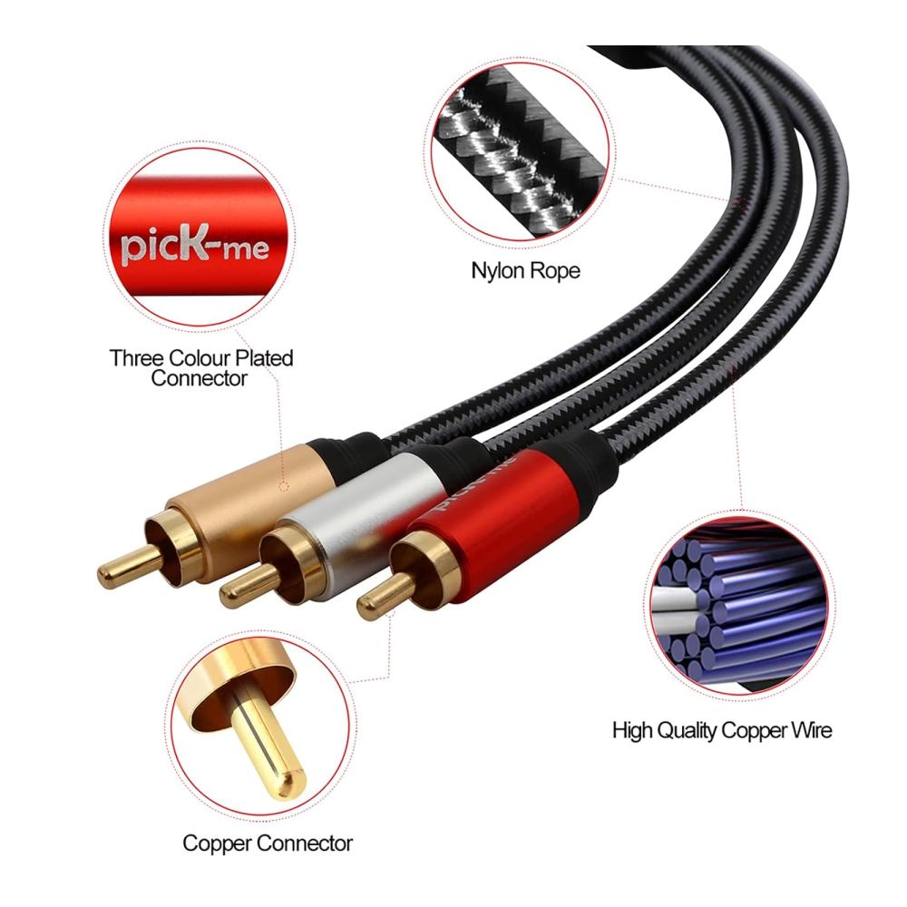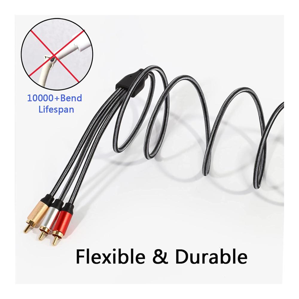Hochwertiges Material – 3 RCA-Steckerköpfe an beiden Enden, das Kabel ist aus reinem Kupfer und das Äußere ist ein neues mattes PVC-Geflecht zum Umweltschutz.