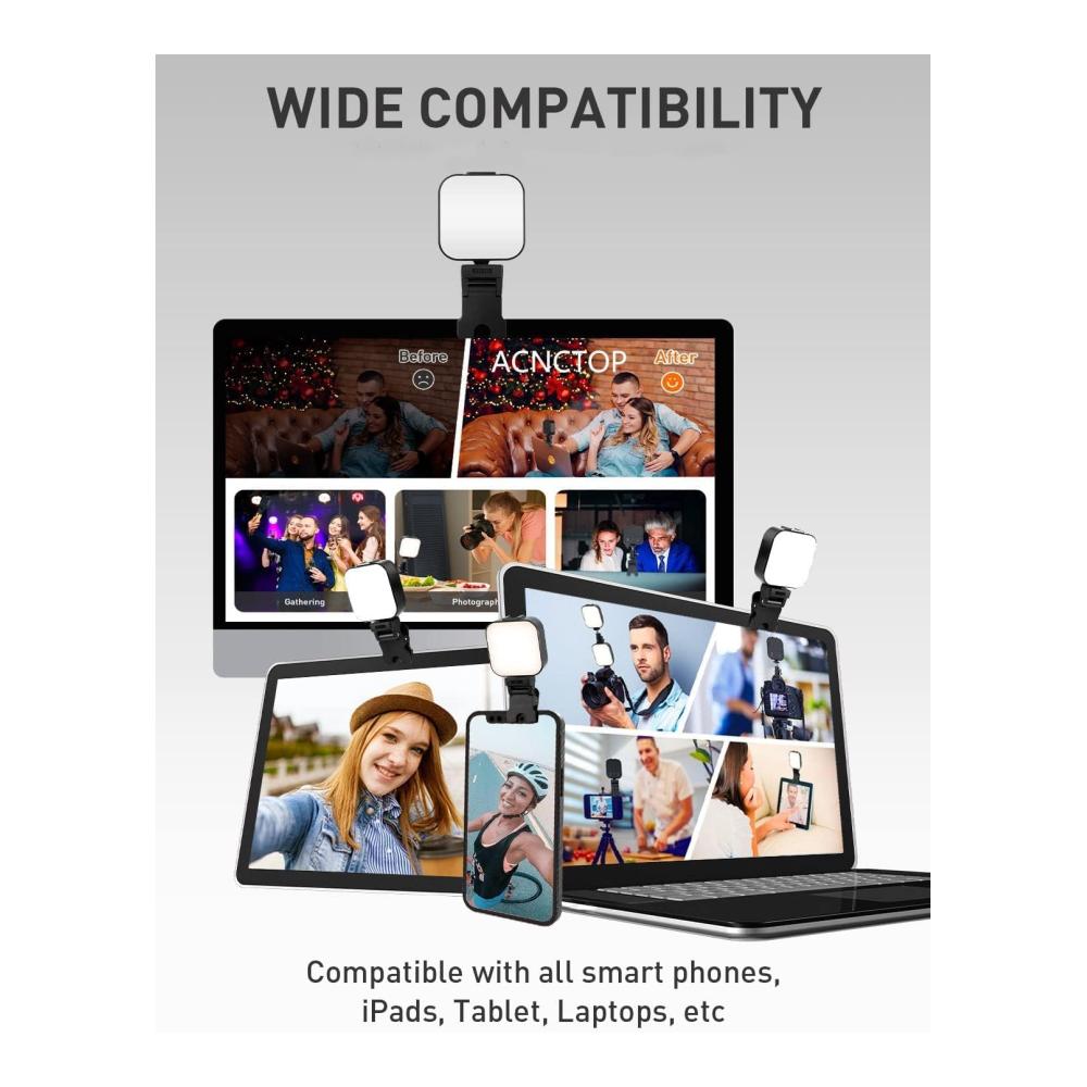 Erleben Sie das ultimative Dauerlicht für Ihre kreativen Bedürfnisse! Unser Selfie Licht mit Clip bietet eine herausragende Helligkeit mit 3 verschiedenen Lichtmodi und einer Farbtemperatur von 2000K-6000K. Dank des eingebauten 1200-mAh-Akkus ist es perfekt für Video-Meetings, Selfies, TikTok-Videos und mehr. Die verbesserte Klemme sorgt für sicheren Halt an Ihrem Gerät, während das Premium-Paket alles enthält, was Sie brauchen. Machen Sie sich bereit, in jedem Licht zu strahlen