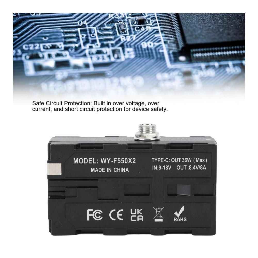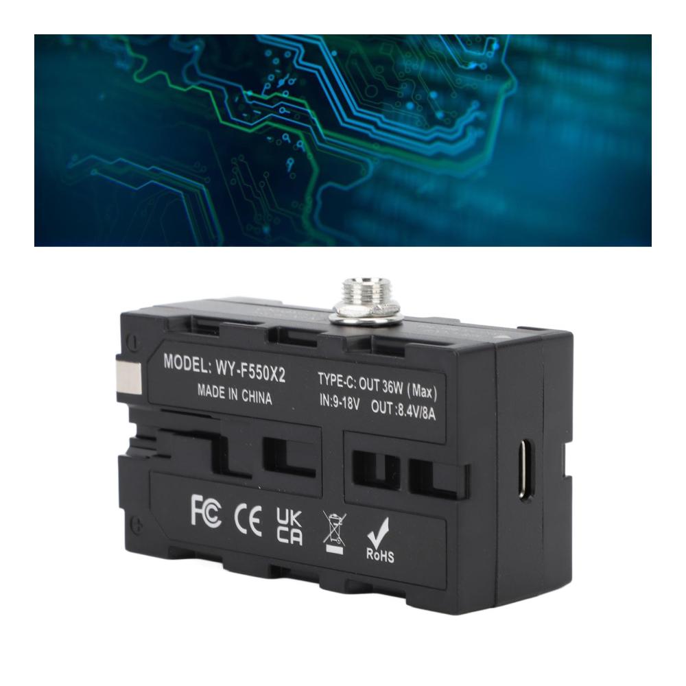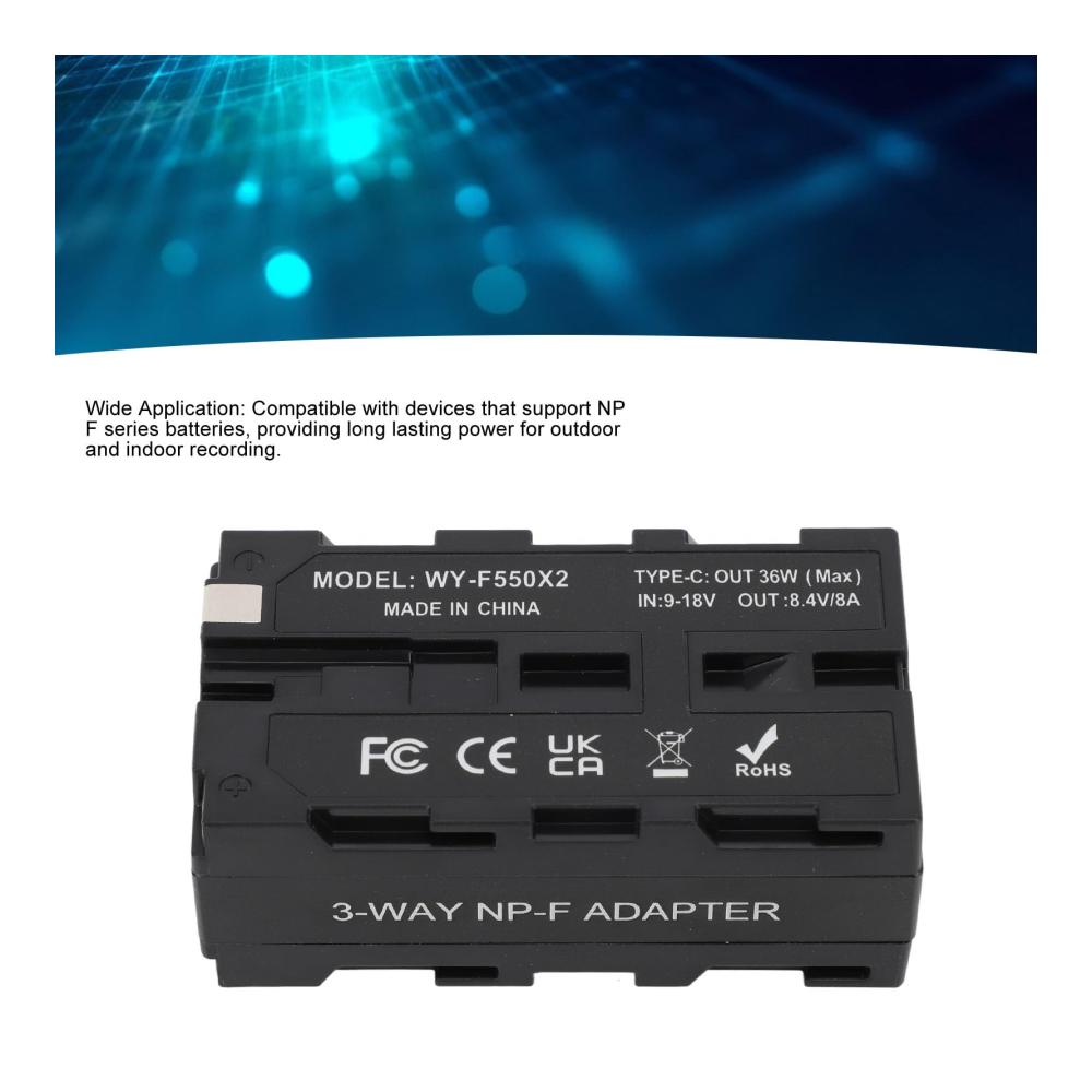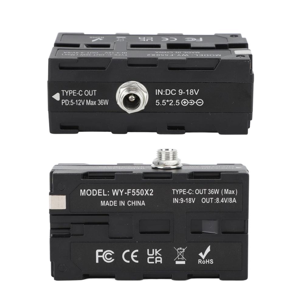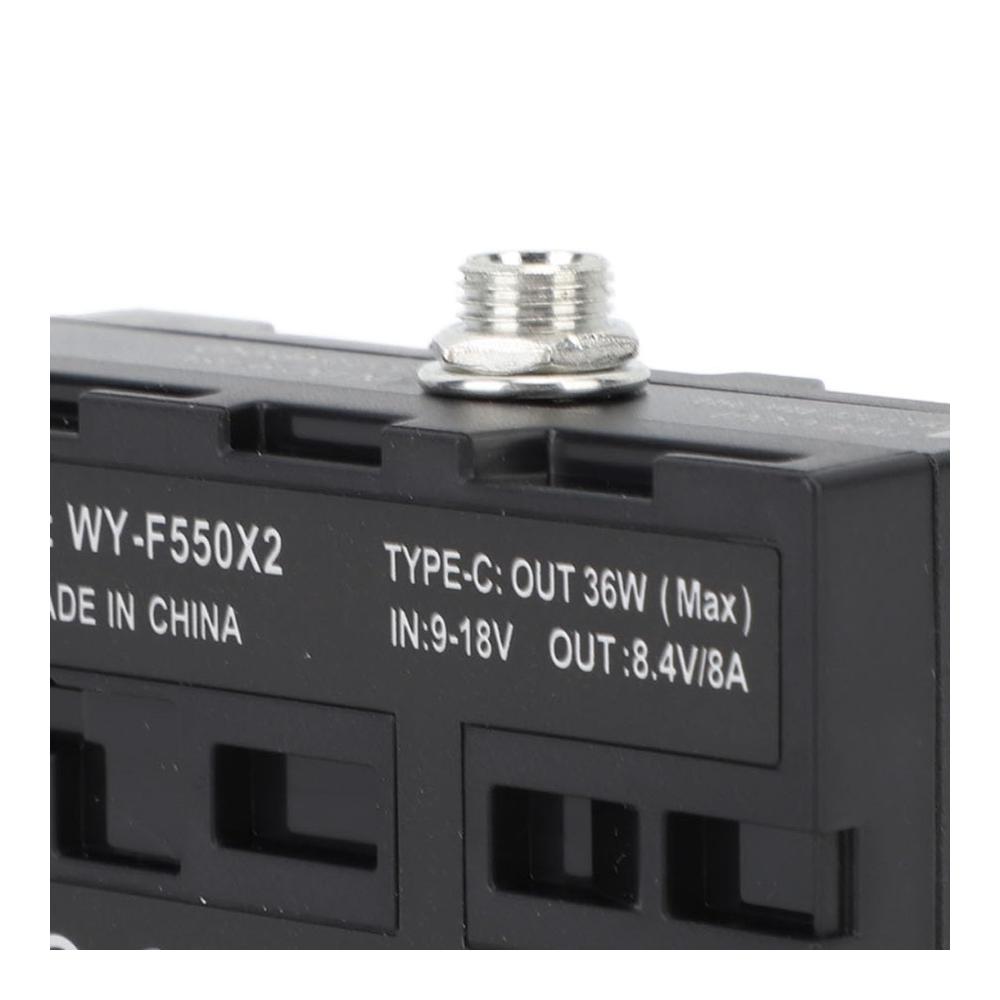 【Flexible Ausgangsoptionen】 Ausgestattet mit einer doppelseitigen F550-Schnittstelle und einem Typ-C-Ausgang sowie einem Federnetzkabel erfüllt dieser Dummy-Akku die Entfernungsanforderungen der meisten Geräte und gewährleistet eine bequeme und zuverlässige Stromversorgung.