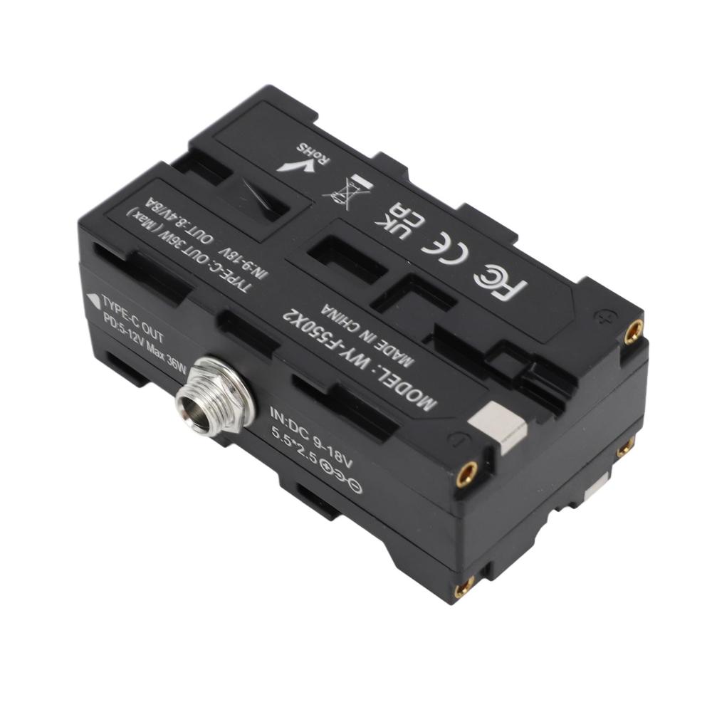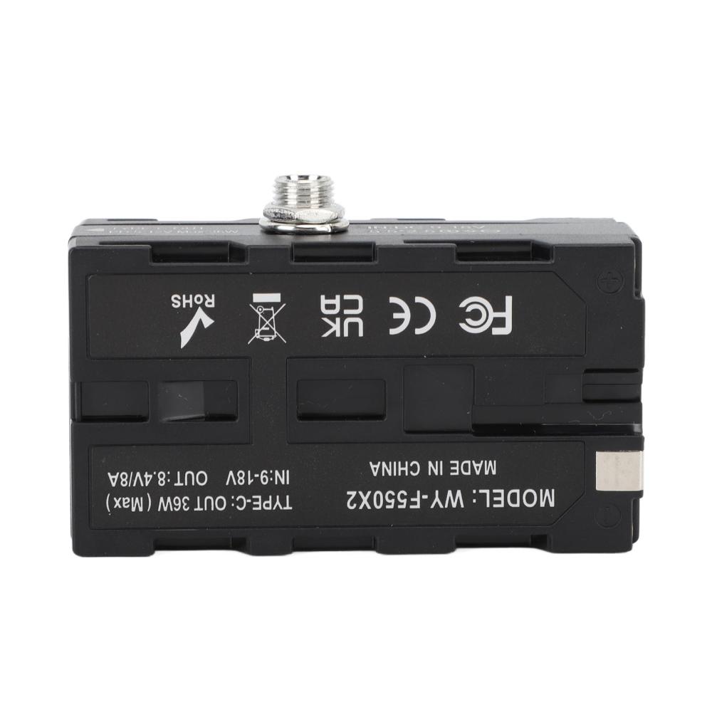 Unser Dummy-Batterie-Netzteil NP F970 F750 F570 F550 bietet eine zuverlässige Stromversorgung für Ihre DCRVX2100- und Atomos V-Monitorkamera. Hergestellt aus hochwertigem ABS und Metall, mit einem DC-Eingang von 9–18 V und einer F550-Ausgangsschnittstelle.