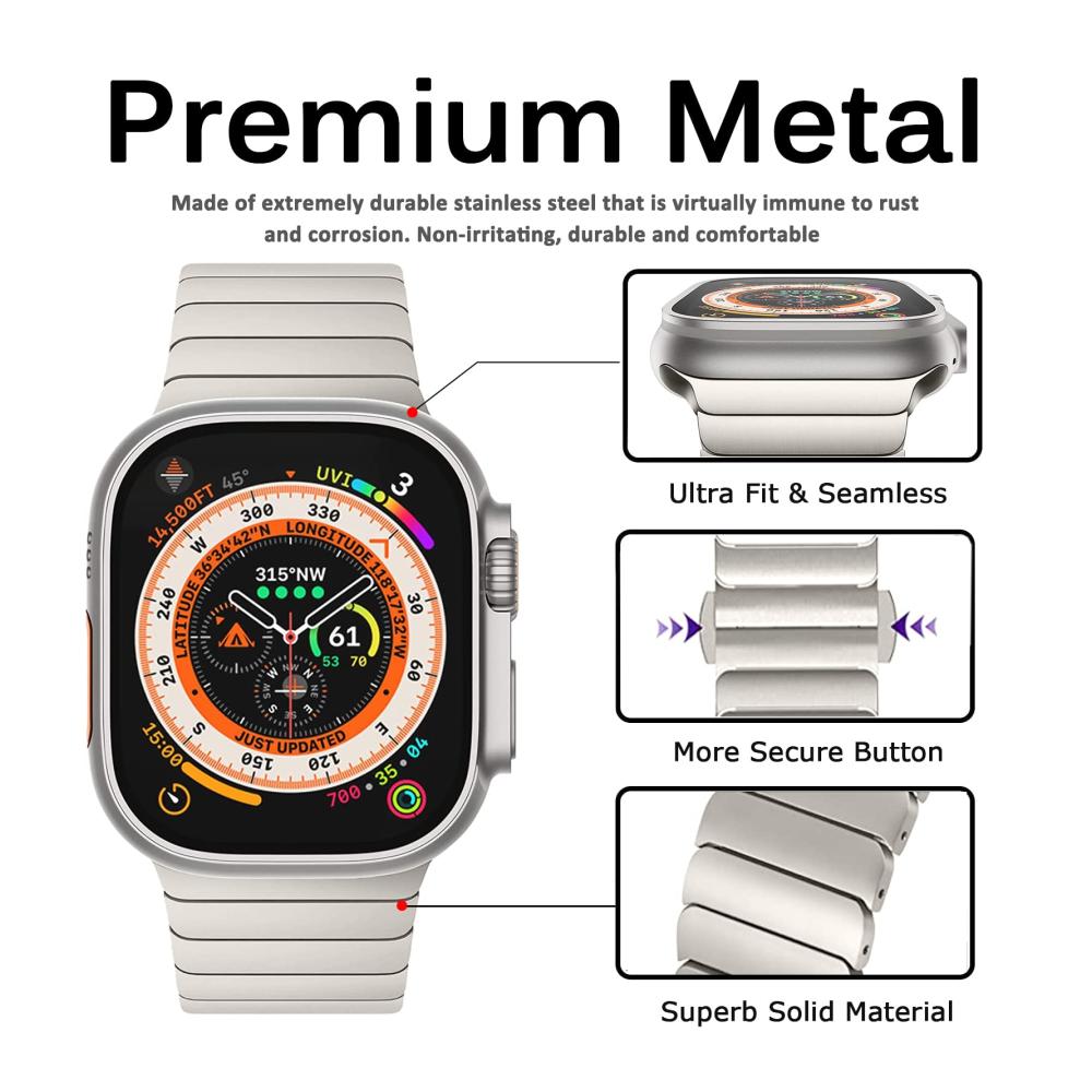 Unser Edelstahlarmband ist kompatibel mit einer Vielzahl von Apple Watch Modellen, darunter die Ultra 1&2 und Serie 9/8/7/6/SE/5/4/3/2/1 in verschiedenen Größen. Es ist in verschiedenen Stilen erhältlich, darunter klassisch, kühl, modisch und elegant.