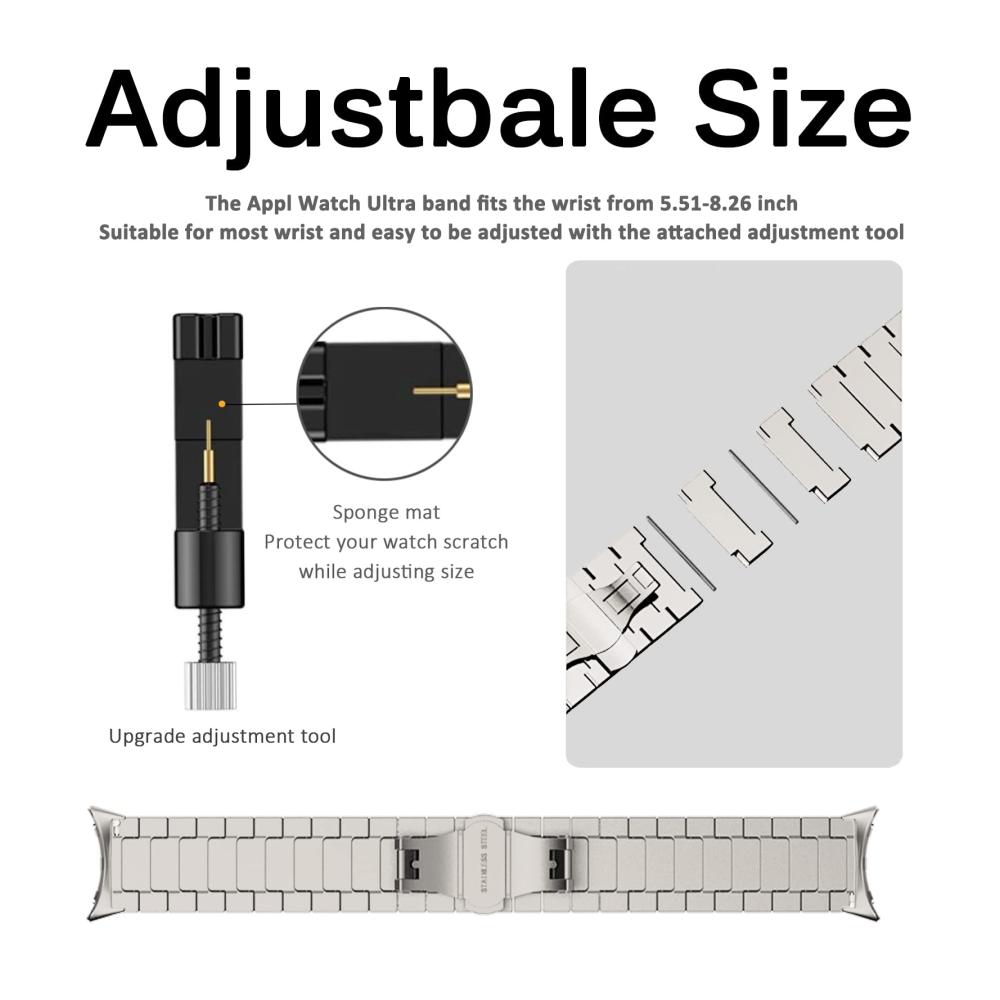 [Einstellbare Größe] Dieses iWatch Ultra 2 Armbänder passt für Handgelenkgrößen von 140mm-230mm. Das Paket wird mit einem Montagewerkzeug geliefert, mit dem Sie die Länge des Armbands an Ihr Handgelenk anpassen können. Dieses iWatch Ultra 2 Uhrenarmband eignet sich für den Alltag oder die Arbeitszeit.