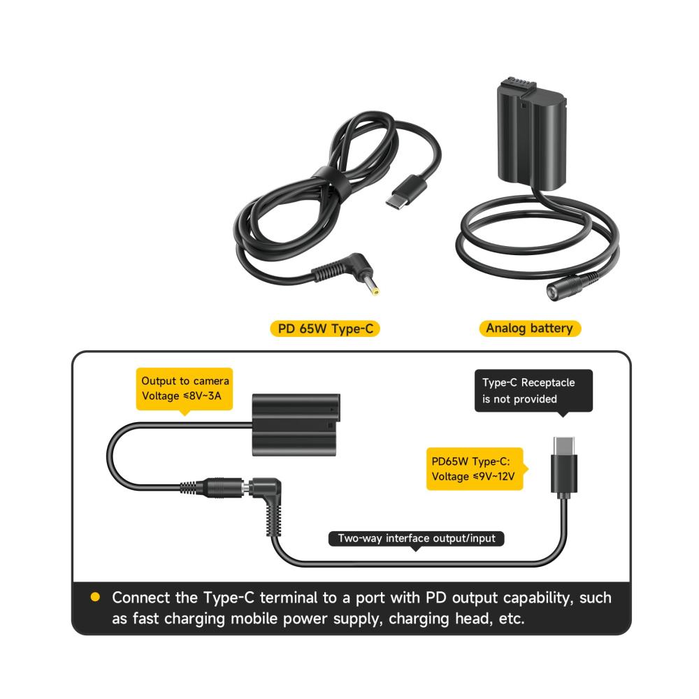 - Liefert der Kamera kontinuierlich Strom für Langzeitaufnahmen, Videoaufnahmen und Interviews.