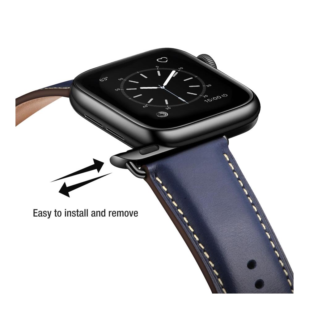 Erleben Sie erstklassigen Stil und Komfort mit unserem hochwertigen Ersatzarmband aus echtem Leder für die Apple Watch Serie 1 bis SE. Handgefertigt und mit einem einfachen werkzeuglosen Installationsprozess. Das zeitlose Design macht es zur perfekten Ergänzung für jeden Anlass.