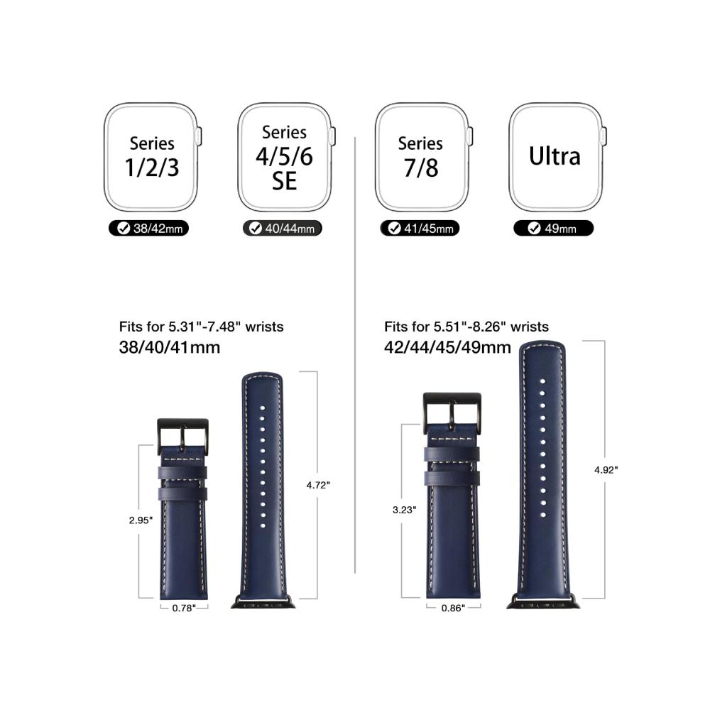 Kompatible Größen: perfekt kompatibel mit Apple Watch Ultra / Ultra 2 Apple Watch Series 9 Series 8/7/6/5/4/3/2/1,SE, 38 mm 40 mm 41 mm von 134 bis 189 mm (5,31 bis 7,48 Zoll). Das Armband hat mehrere Löcher, die Ihnen helfen, die richtige Größe für Ihr Handgelenk zu finden.