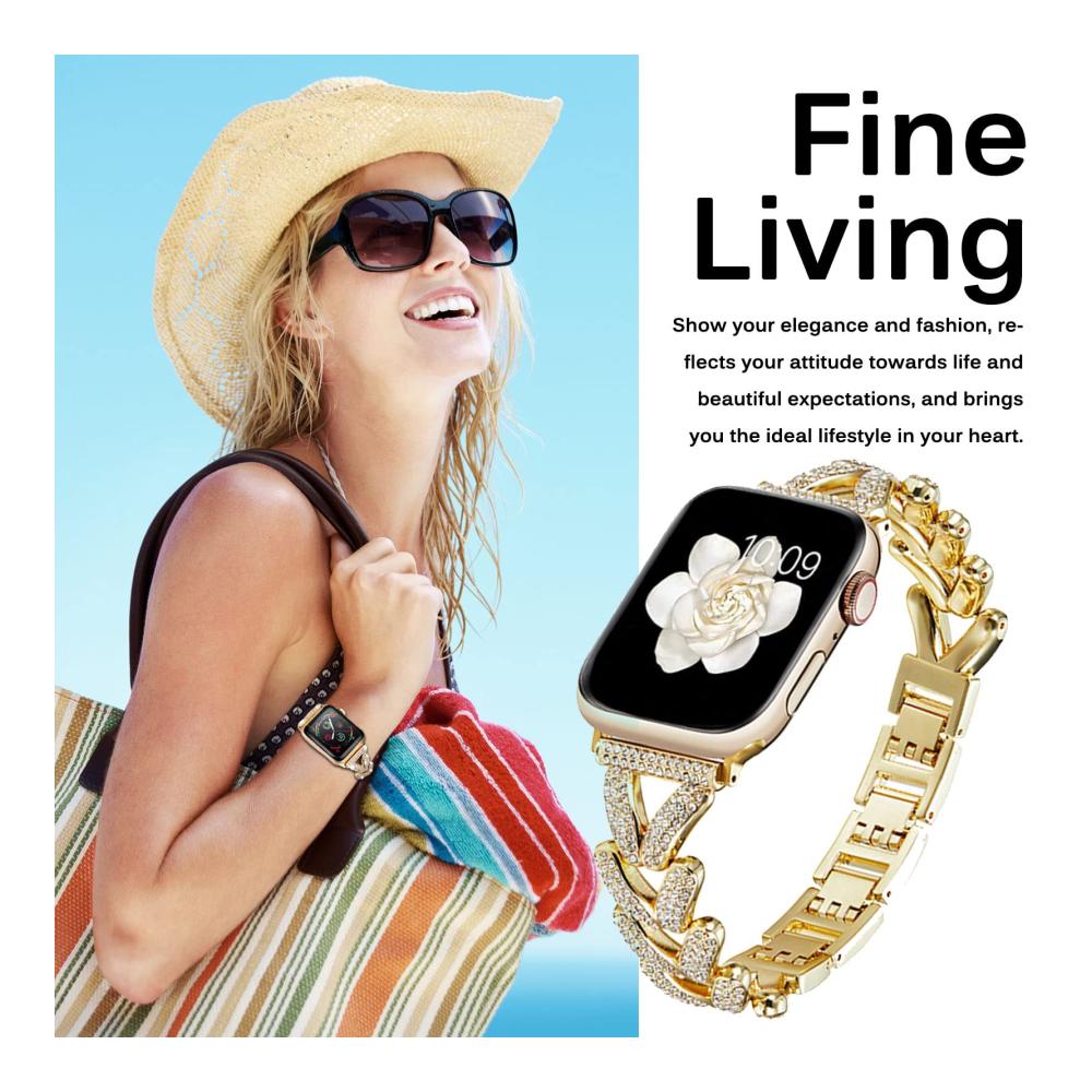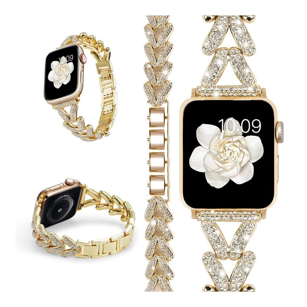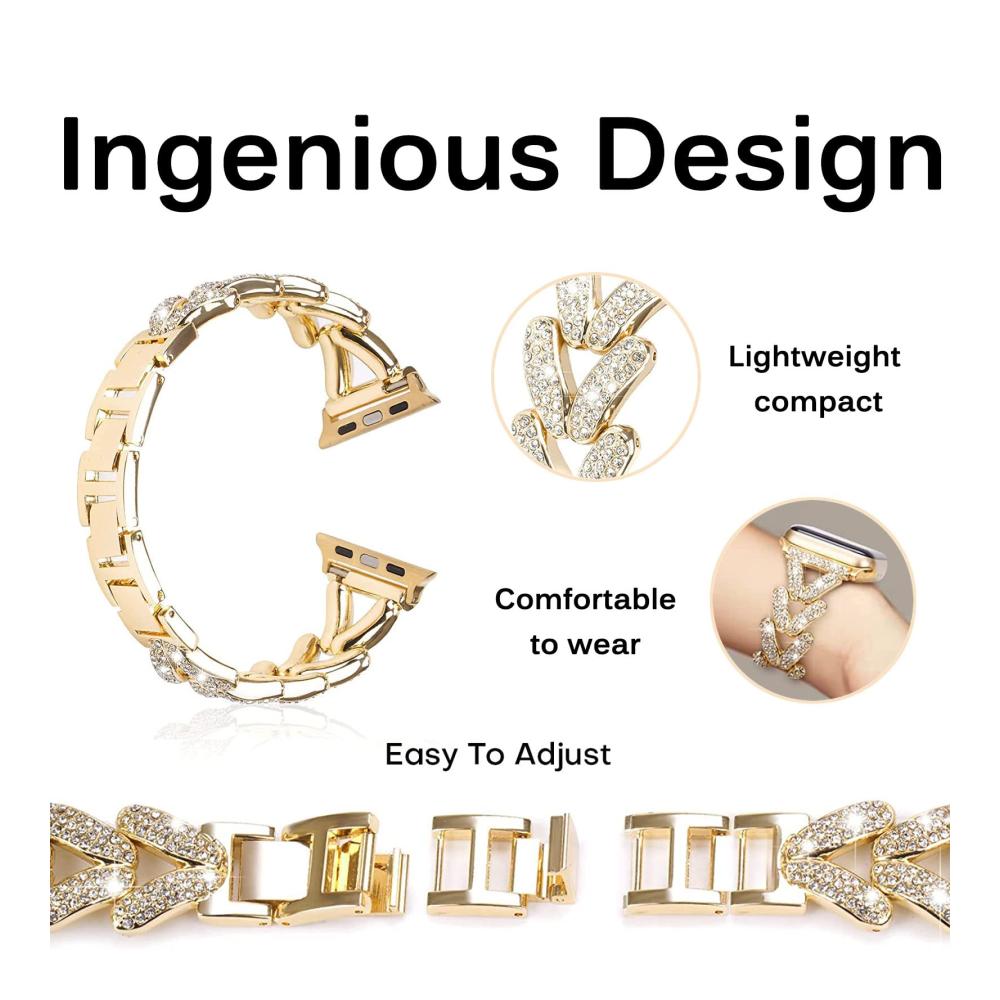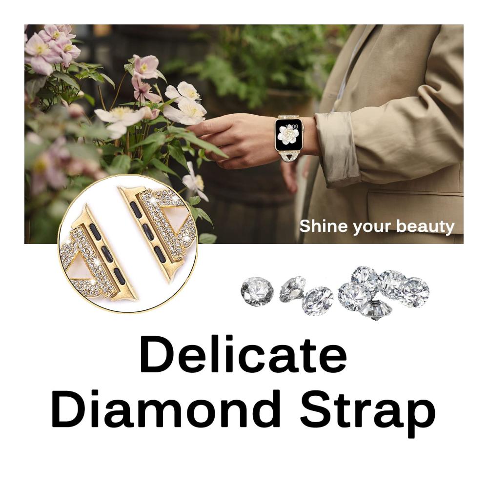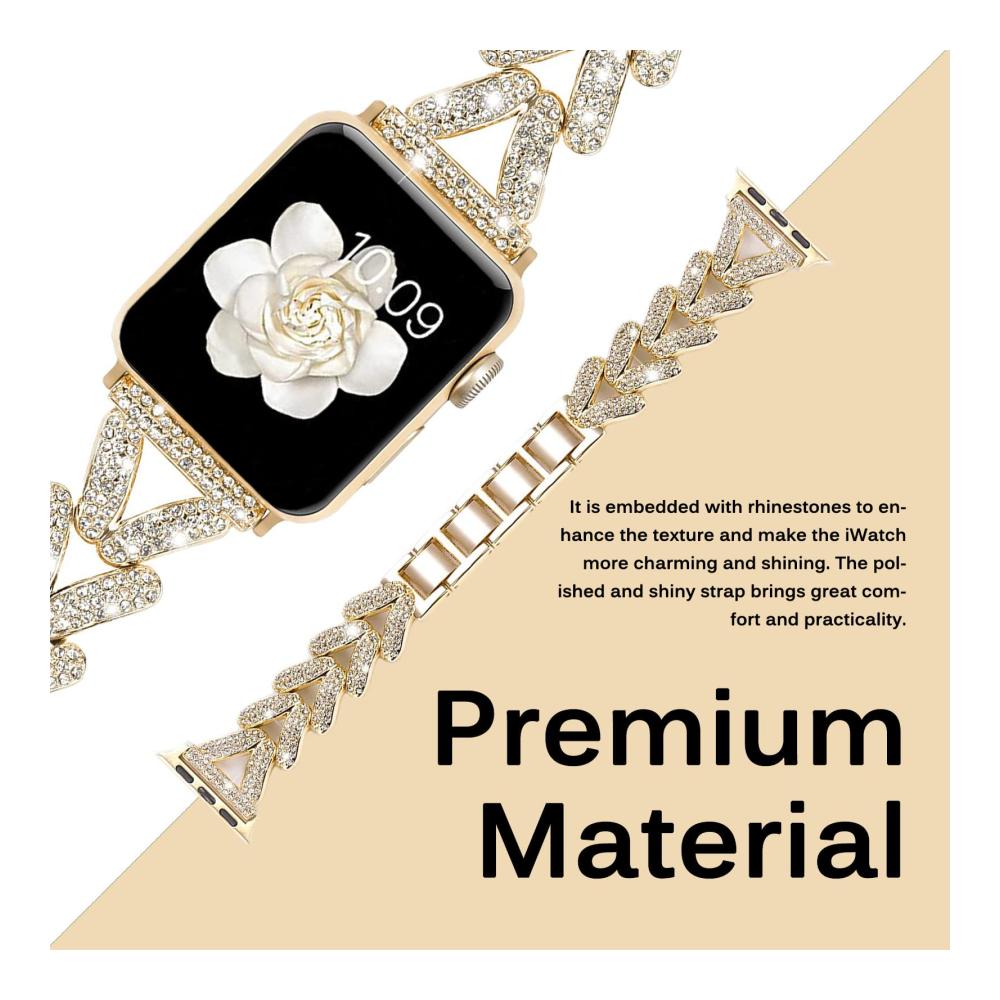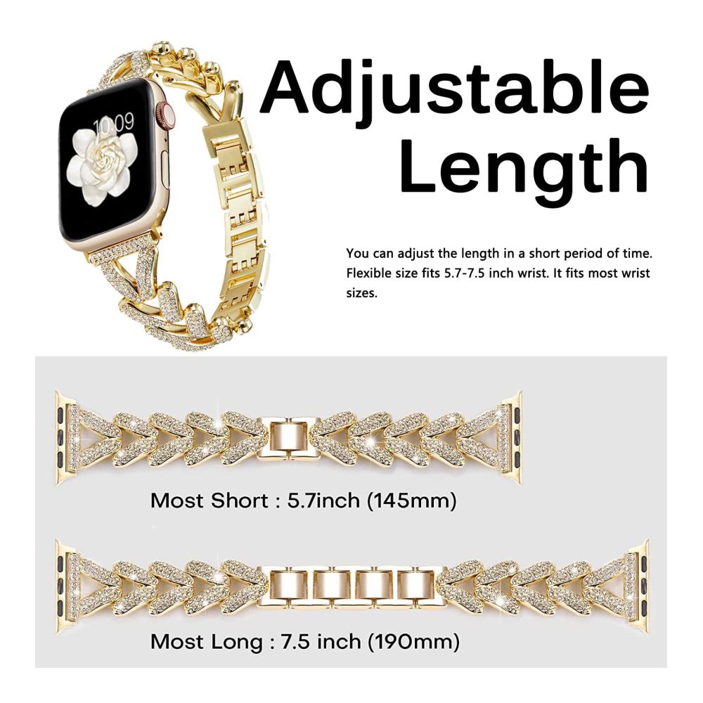 Entdecken Sie unser hochwertiges Metallarmband, das mit der Apple Watch Ultra 2/1 kompatibel ist. Es passt zu den Modellen 49mm, 45mm, 44mm und 42mm der iWatch Serie 9, 8, 7, 6, 5, 4, 3, 2, 1, SE2 und SE. Hergestellt aus Legierungsmaterial und glitzerndem Strass, ist es langlebig, wasserdicht und angenehm zu tragen. Das einzigartige Design mit dreieckiger Hohlform und funkelnden Diamanten verleiht Ihrer Uhr ein elegantes und einzigartiges Aussehen. Die Größe ist leicht anpassbar, und unser zuverlässiger Kundenservice steht Ihnen bei Fragen zur Verfügung.