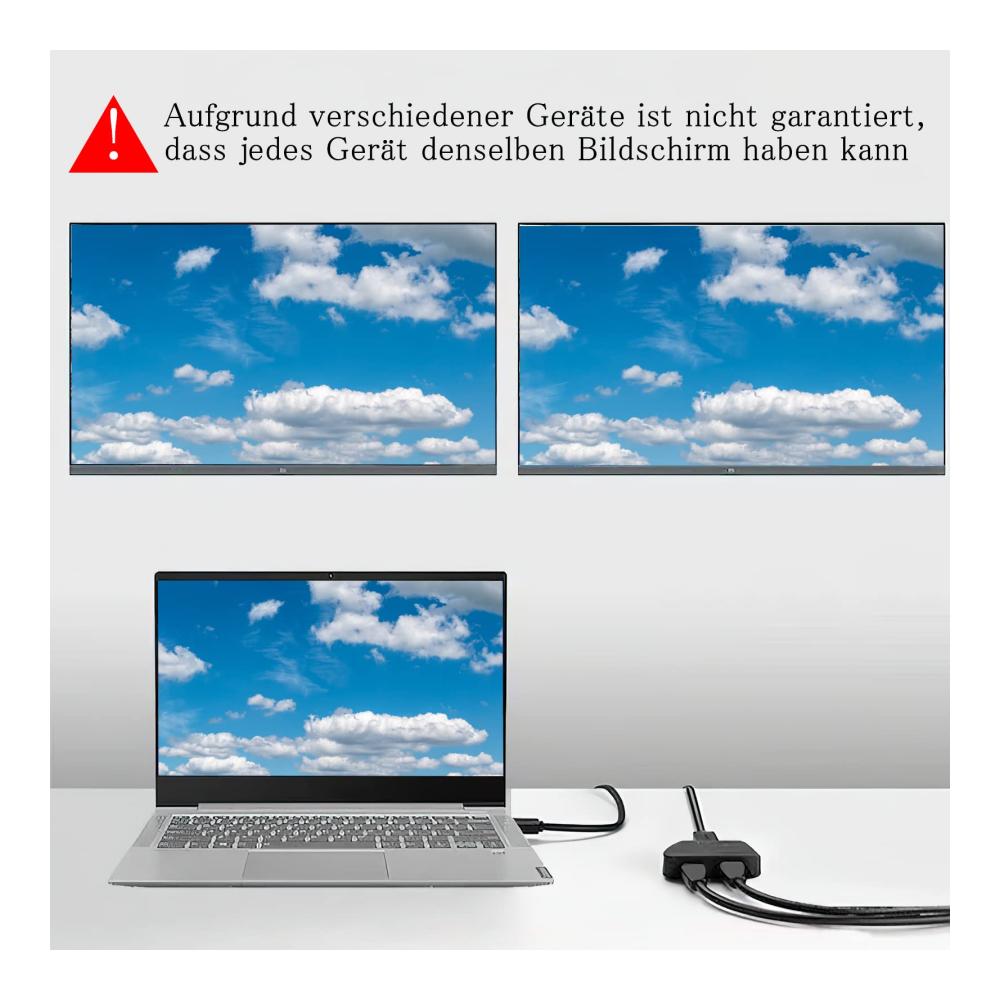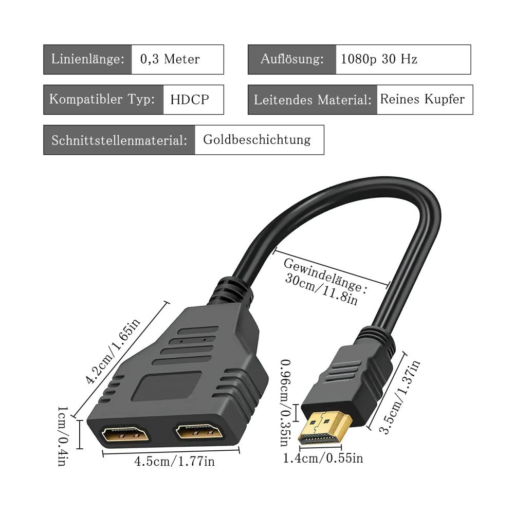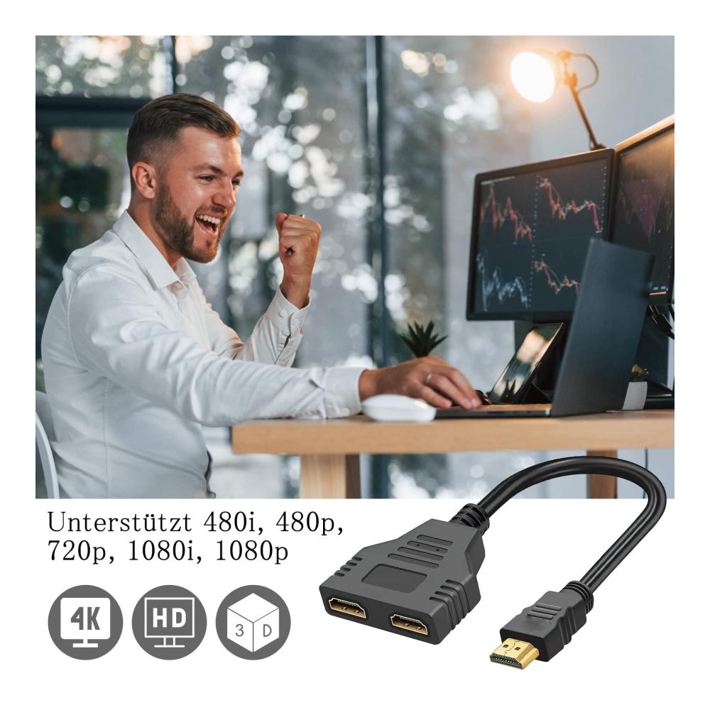Verbessern Sie Ihre HDMI-Konnektivität mit dem DAWRIS HDMI Splitter Adapter. Dieser praktische Adapter verteilt ein HDMI-Eingangssignal auf zwei Ausgänge und ermöglicht den Anschluss einer Vielzahl kompatibler Geräte wie Monitor, Fernseher, DVD-Player und Projektor.
