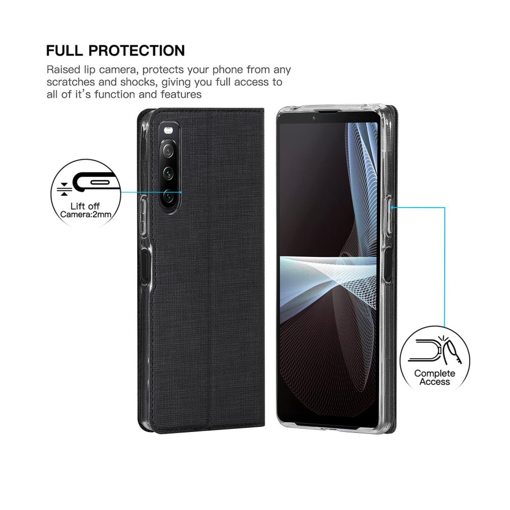 Schützen Sie Ihr Sony Xperia 10 IV mit diesem hochwertigen Holster. Das Klappetui aus Premium-PU-Leder bietet Platz für Ausweis und Kreditkarten. Der integrierte Ständer ermöglicht verschiedene Betrachtungswinkel für Filme oder Video-Chats. Das schlanke Design betont Ihre Eleganz, während die präzise Formgebung vollen Zugriff auf alle Anschlüsse gewährleistet. Die 360-Grad-Schutzhülle mit rutschfester Oberfläche bietet Sicherheit vor Stößen und Stürzen. Mit Magnetverschluss für zusätzliche Sicherheit.
