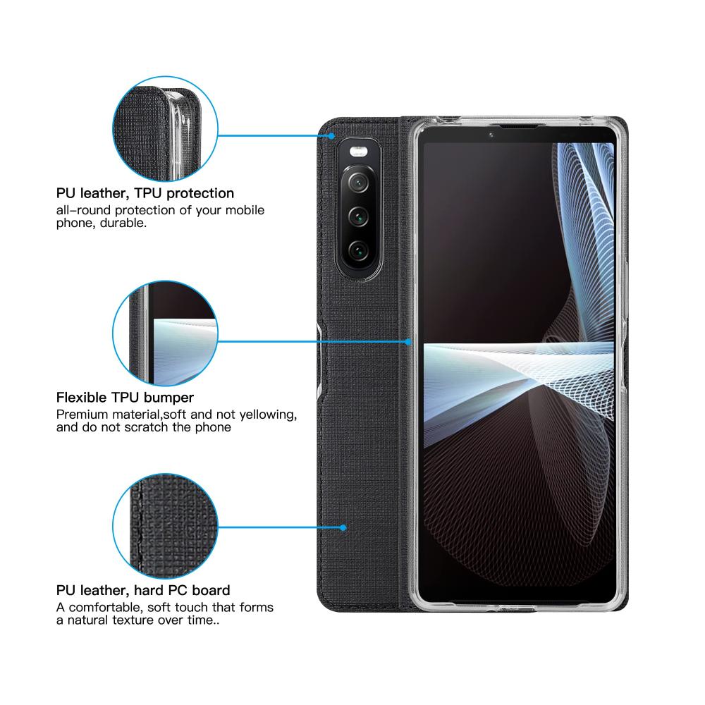 Diese schlanke, elegante Hülle ist speziell für das Sony Xperia 10 IV 2022 entworfen worden. Eigenschaften: Multifunktional: Ein Kartenfach für Kreditkarten, Ausweise. Verstellbarer Winkel: Sie können den Winkel beim Anschauen von Filmen zufällig einstellen. Weiches Material: Umweltfreundliches Material, Bezug aus PU-Leder und weichem TPU-Innenmaterial. Perfekte Passform: Aussparung durch eine Präzisionsform, passgenau für Ihr Telefon, einfach anzubringen und abzunehmen. Magnetischer Saugnapf: Das magnetische Design schützt den gesamten Körper Ihres Telefons sehr gut und hält Ihr Telefon charmant und schlank. Nur ein wenig magnetische Saugkraft. Hinweis: Diese Schutzhülle ist nur für Sony Xperia 10 IV 2022 geeignet. Bitte überprüfen Sie Ihr Handy-Modell. Service und Garantie Wenn es irgendwelche nicht-künstlichen Produktprobleme über unsere Hüllen gibt, kontaktieren Sie uns bitte umgehend. Wir senden Ihnen eine neue Hülle kostenlos oder Rückerstattung vollständig. Bitte seien Sie versichert, dass jedes Problem oder Frage wir für Sie so schnell wie möglich beheben. Wir stehen Ihnen immer zur Verfügung!