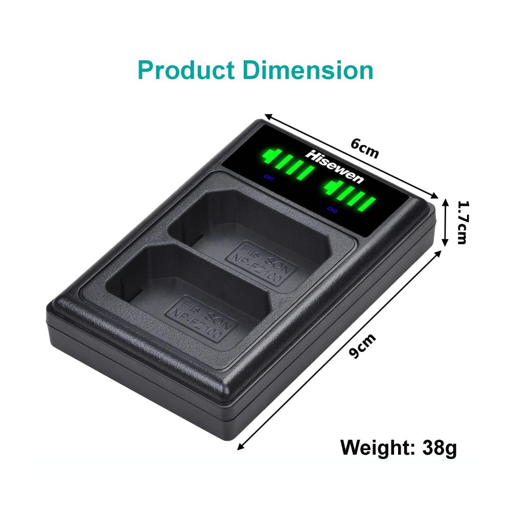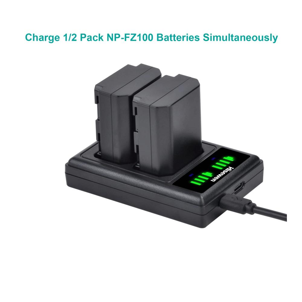Das NP-FZ100 Akku Ladegerät von Hisewen ist die ideale Lösung für Ihre Sony Alpha A7 III, A6600, A7C und weitere Modelle. Dieses Dual-USB-Ladegerät ermöglicht das gleichzeitige Aufladen von zwei NP-FZ100 Akkus. Die LED-Anzeige zeigt den Ladestatus deutlich an. Mit einer Eingangsspannung von 5 Volt ist es vielseitig einsetzbar und kann über verschiedene Quellen wie Wandladegerät, Powerbank oder Laptop betrieben werden.