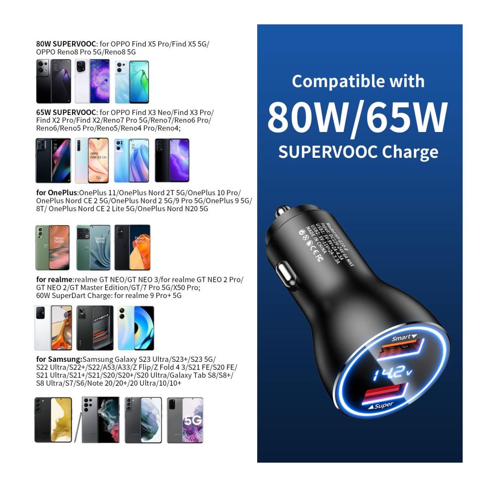 ✅【OPPO Kfz-Ladegerät 80 W und USB C-Kabel】Es ist speziell für 80 W SUPERVOOC OPPO Find X5 Pro/Find X5 5G/Reno8 Pro/Reno8; für 65 W OPPO Find X3 Neo/Find X3 Pro/Find X2 Pro/X2/Reno7 Pro/Reno6 Pro/6/Reno55/Pro/5/Reno4 Pro/4;Für OPPO Reno7 Z 5G/Find X/Reno3 Pro/3/A94;Für OnePlus 11/Nord 2T 5G/10 Pro/9;Für realme GT NEO/GT NEO 3/Für realme GT NEO 2 Pro/GT NEO 2/GT Master Edition/GT/7 Pro/X5. 0 Pro/Realme 9 Pro ;für Samsung Galaxy/Xiaomi/Google Pixel/iPhone/iPad…