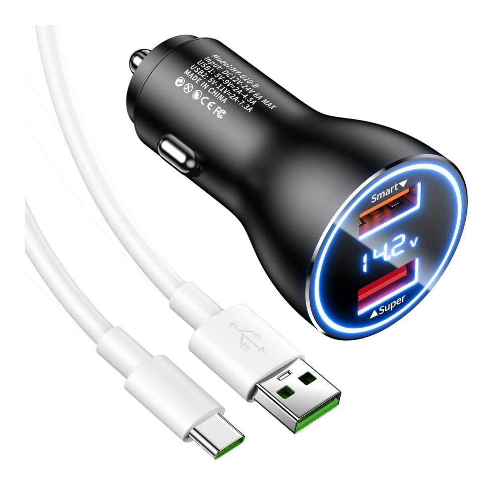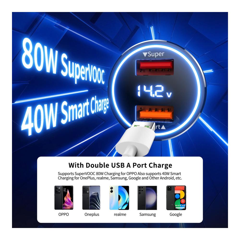 Fortschrittliches Material und LED-Licht: Dieses SuperVOOC Kfz-Ladegerät besteht aus einer Aluminiumlegierung und einem flammenhemmenden Kunststoff, der für eine lange Zeit verwendet werden kann. Dieses USB-Schnellladegerät verfügt über zwei Ladeanschlüsse für eine bessere Nutzung und hat eine weiche LED-Öffnung, um Ihnen zu helfen, die USB-Anschlüsse im Dunkeln zu finden, ohne Angst vor Dunkelheit zu haben.