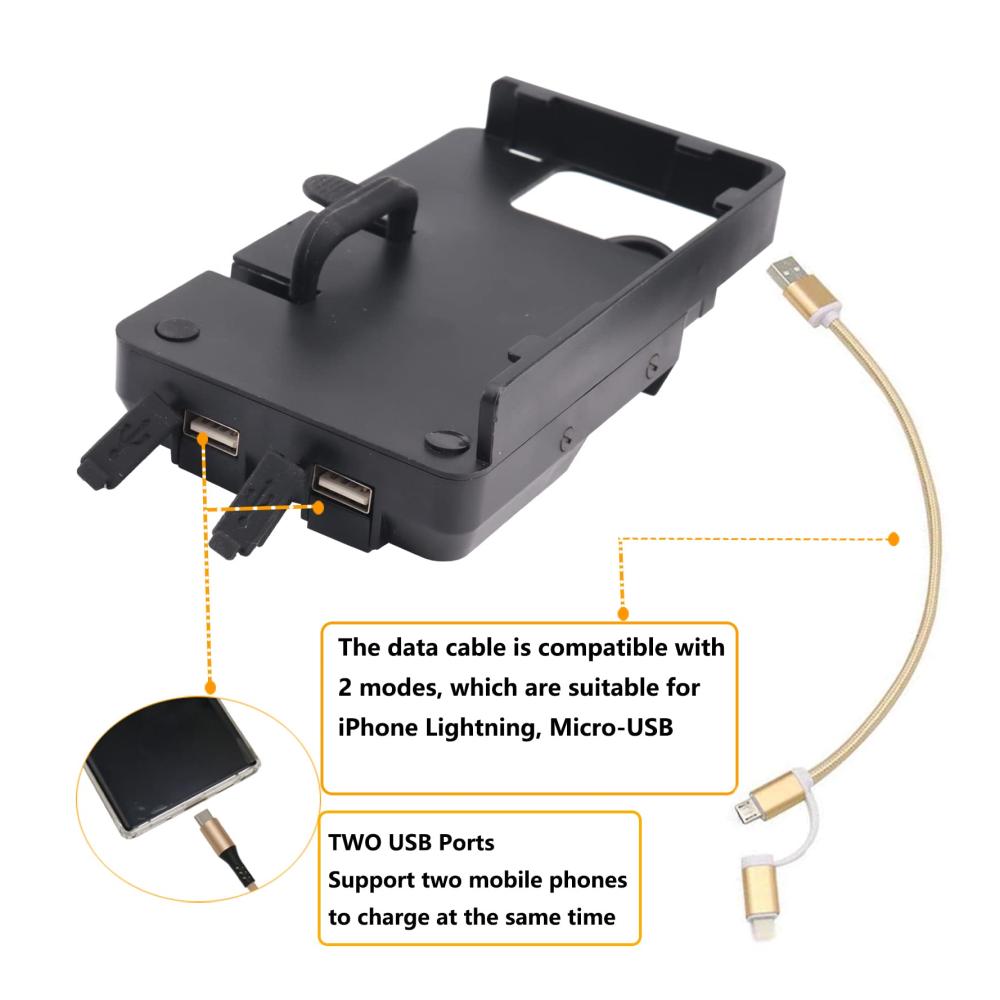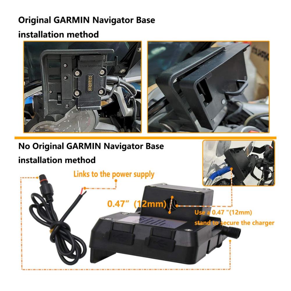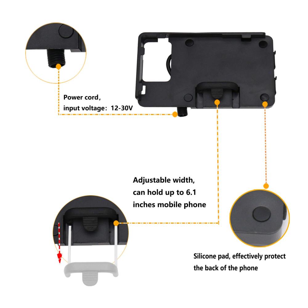 Die kabellose Ladehalterung ist universell und kann von allen Motorrädern verwendet werden, die 12-mm-Montagehalterung muss jedoch für die Installation separat erworben werden. Es können Mobiltelefone mit kabelloser Ladefunktion verwendet werden, aber auch solche ohne kabellose Ladefunktion können mit einem USB-Kabel verwendet werden.