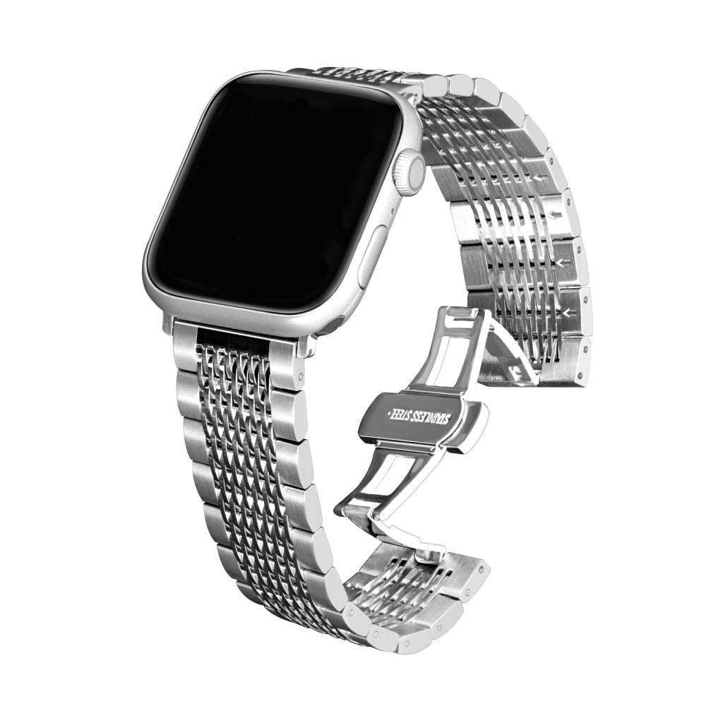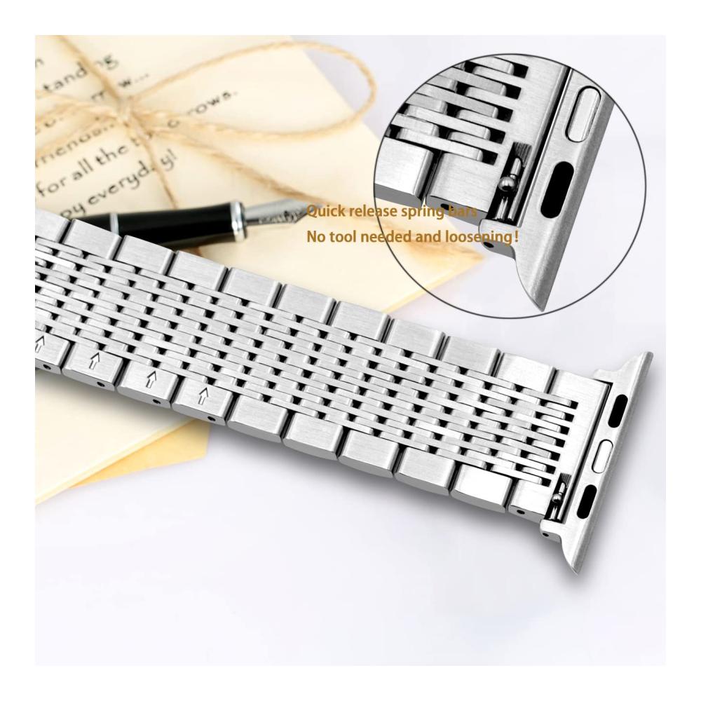 Ersetzen Sie Ihr altes Armband durch dieses hochwertige Edelstahl-Ersatzarmband, das speziell für Apple Watch Series 1, 2, 3, 4, 5, 6, 7 und Apple Watch Sport entwickelt wurde. Die integrierten Schnellwechsel-Federstangen ermöglichen einen werkzeuglosen Austausch der Bänder in Sekundenschnelle. Das Armband besteht aus raffinierten Stahlgliedern mit Doppelknopfversicherung für sicheren Halt. Der Adapter wird von Fachhandwerkern bearbeitet und gewährleistet eine einfache Installation und hohe Robustheit. Im Paket enthalten: 1 x Edelstahl-Armband, 1 x Tool zum Entfernen von Links, 2 x Uhrenösen. Unser Kundendienst steht Ihnen bei Qualitätsproblemen zur Verfügung und bietet innerhalb von 24 Stunden eine 100% zufriedenstellende Lösung.