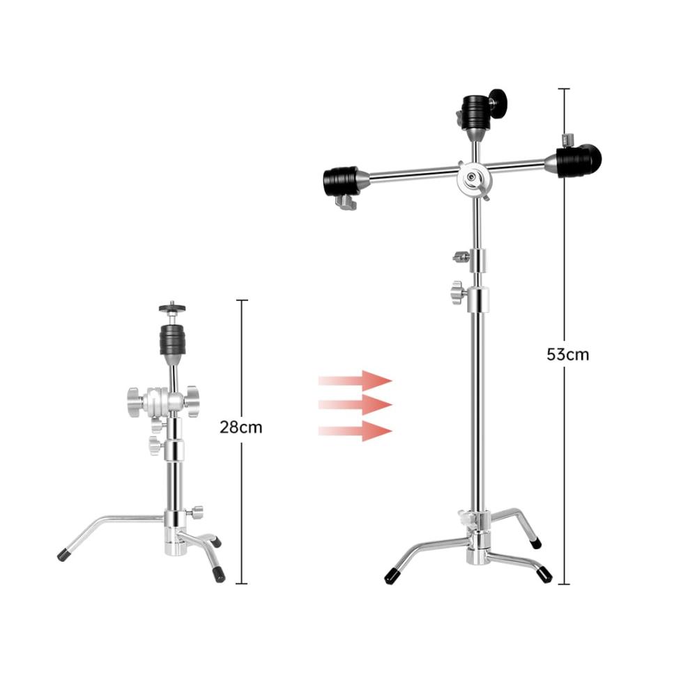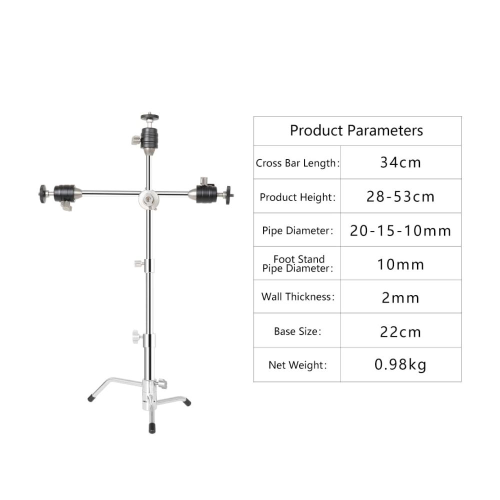 Dieses Mini C-Stand 20 8 Zoll Schreibtischstativ Telefonstativ aus Aluminiumlegierung bietet eine Tragfähigkeit von bis zu 10 kg. Mit 2 Abschnitten und einer abnehmbaren Querstange ist es ideal für Live-Stream und Videoaufzeichnungen. Die Marke Irfora bietet Qualität und Kompatibilität für Ihre Kameraaufnahmen.