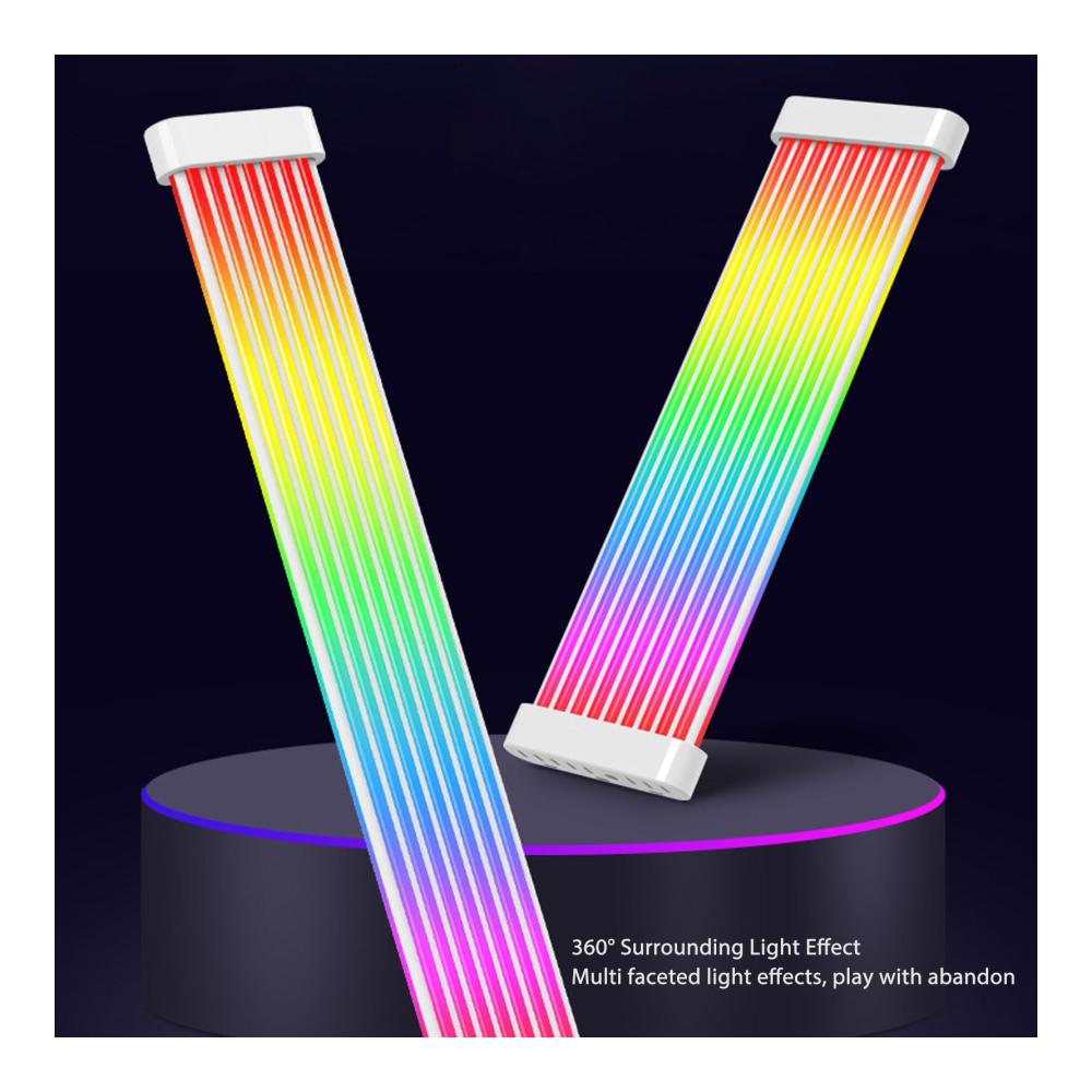 BIEGBAR: Das RGB-Stromverlängerungskabel-Set ist weich und kann stark gebogen werden. Es kann als Lichtleiste für Gehäuse, als Stromkabel für dekorative 24-Pin-Motherboards oder als Stromkabel für dekorative 8-Pin-Grafikkarten mit integriertem Bündelungsband verwendet werden , keine Verlängerungskabel.