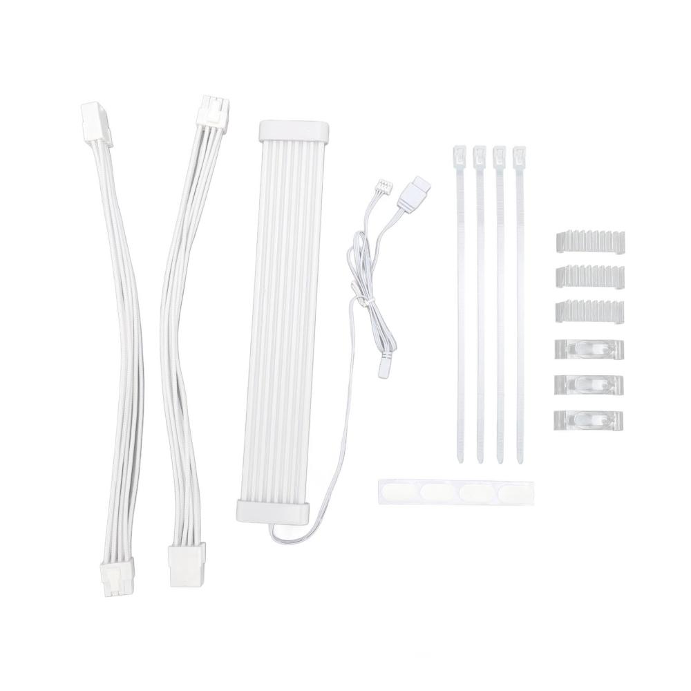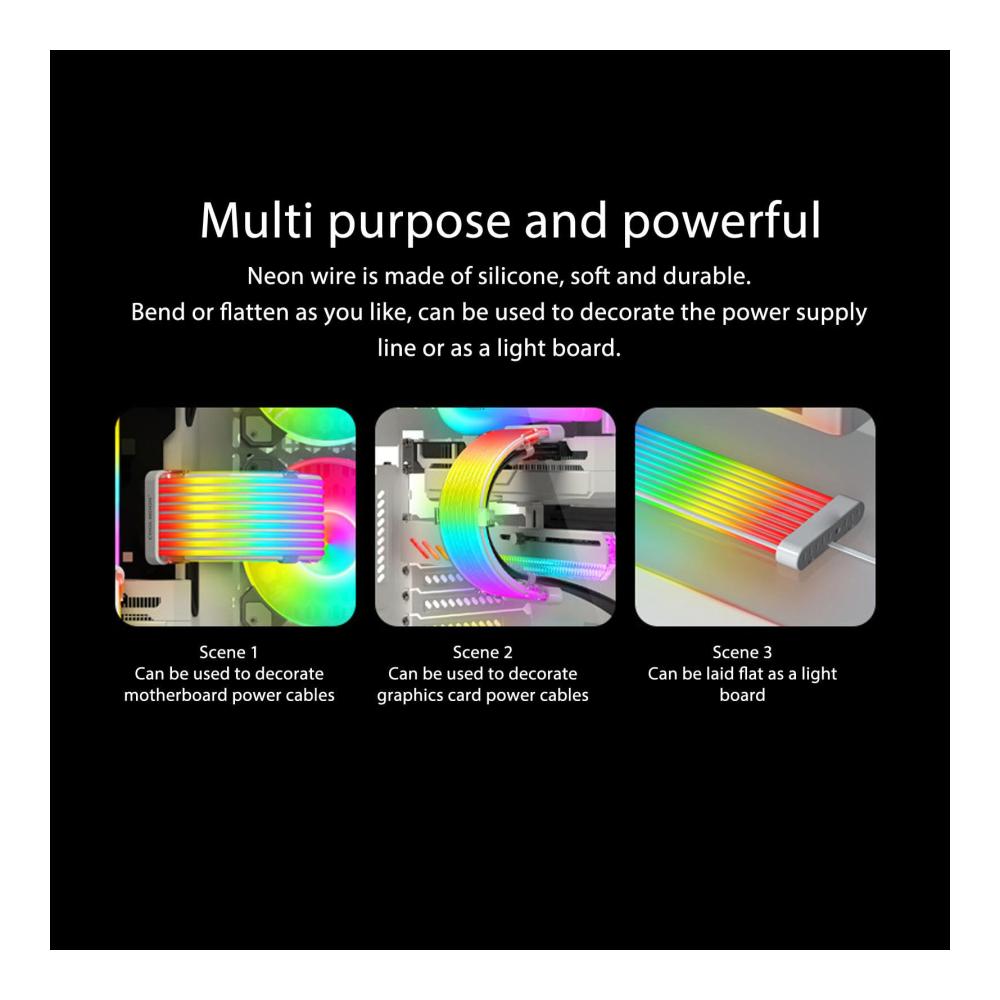Biegbare Vielseitigkeit: Das weiche RGB-Stromverlängerungskabel-Set kann dramatisch gebogen werden und dient als Lichtleiste für Gehäuse, Stromkabel für dekorative 24-Pin-Motherboards oder Stromkabel für dekorative 8-Pin-Grafikkarten mit integriertem Bündelungsband – ganz ohne Verlängerungskabel.