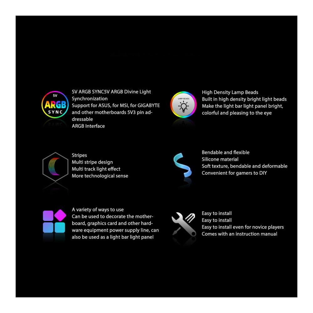 Kompatible Motherboards: Unterstützt 5V ARGB 3PINx2- und 4PIN-Anschlüsse für ASUS Synchronous, GIGABYTE RGB, MSI Sync-Motherboards.