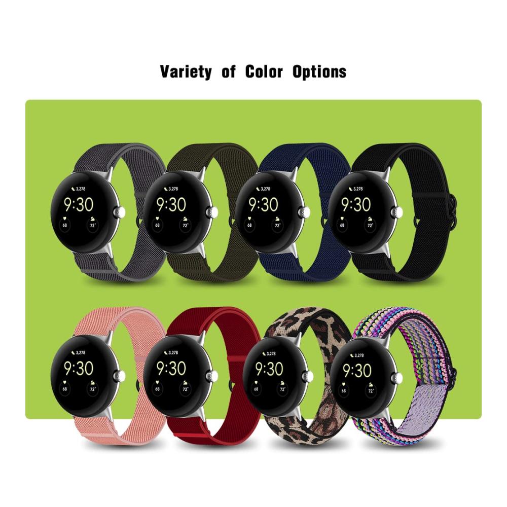 KoGiio Hohe elastizität nylon armband. -kompatibel mit Google Pixel Watch -kompatibel mit Google Pixel Watch 2 Einfaches und stilvolles design: -1. Aus nylon, mit verstellbarer stahlschnalle, die schnell und einfach angepasst werden kann, um die Länge des armbands zu ändern. -2. Können sie sowohl mode als auch sportstil genießen, geeignet für frauen, männer . -3. Langlebig, atmungsaktiv und lightweight. -4. Mehrere farben optional, ankleiden sie ihre uhr sie ihr leben färben. -5. Sie können verschiedene farben von uhrenarmbändern auswählen, die zu ihrer kleidung passen, je nach stimmung und anlass. -6. Wunderbare geschenke zu ihrem geliebten, familie, freunden. Hinweis: -Wenn das nylonarmband versehentlich nass wird, dauert das trocknen nur wenige minuten und verblasst nicht aufgrund von schweiß und regen, sodass sie es beim schwimmen oder sogar duschen frei tragen können. Das paket beinhaltet: 1x nylon uhrenarmband