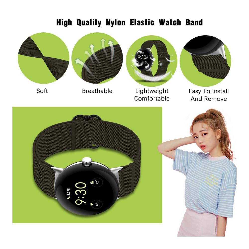 Entdecken Sie das hochelastische Nylon Armband von KoGiio, das perfekt mit Google Pixel Watch und Google Pixel Watch 2 kompatibel ist. Das einfache und stilvolle Design bietet Komfort und Vielseitigkeit für Frauen und Männer.