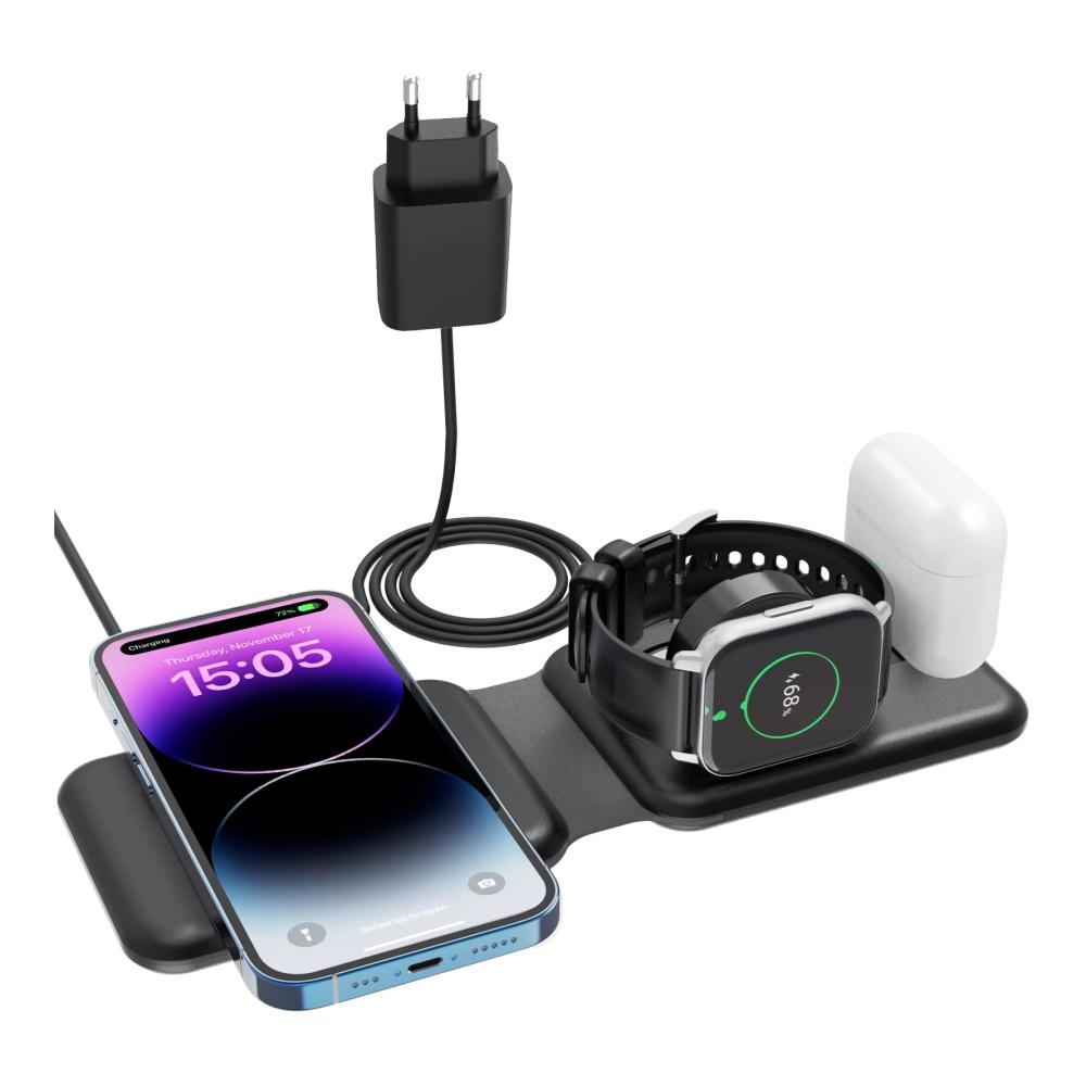 Entdecken Sie das innovative Olycism 3-in-1 Faltbar Kabelloses Ladegerät in elegantem Schwarz! Kompatibel mit einer Vielzahl von Geräten wie Kopfhörern, Handys und Smartwatches, bietet dieses Ladegerät ein kabelloses Ladeerlebnis der Extraklasse. Mit einer Eingangsspannung von 9 Volt und einer Leistung von 15 Watt können Sie Ihr iPhone 14/13/12/11 Pro Max/Mini/XS/XR, Ihre iWatch 8/7/6/SE/5/4/3/2 und AirPods Pro1/2/3 mühelos aufladen. Erfüllt die Qi-Spezifikationen für sicheres und effizientes Laden. Holen Sie sich jetzt Ihre Olycism Ladestation und erleben Sie die Zukunft des Ladens!
