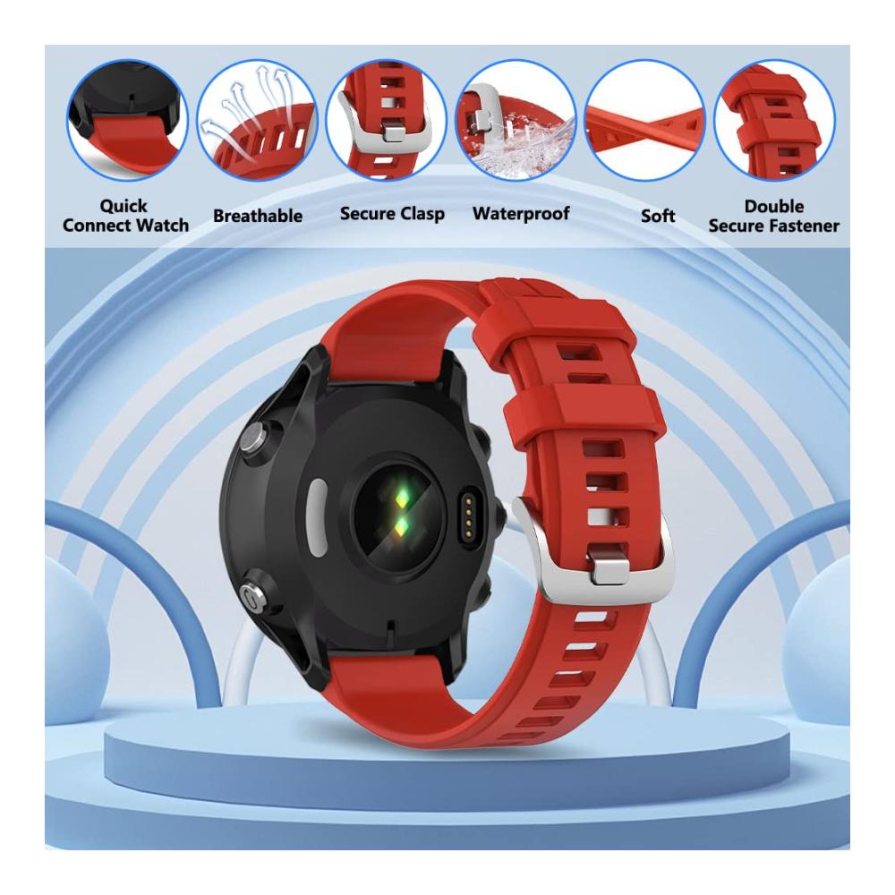 KoGiio Quickfit 22mm Weiche Silikon Uhrenarmband, Passend für Handgelenke mit Einem Umfang Von 135 mm – 215 mm. -Kompatibel mit Garmin Forerunner 955 -Kompatibel mit Garmin Forerunner 945 -Kompatibel mit Garmin Forerunner 935 -Kompatibel mit Garmin Descent G1 -Kompatibel mit Garmin instinct 2 -Kompatibel mit Garmin instinct -Kompatibel mit Garmin approach S62 -Kompatibel mit Garmin approach S60 [Vorteil] -1.Hergestellt aus hochwertigem, langlebigem und flexiblem Silikon (um die Haut nicht zu verletzen) -2.Die Uhrenarmbänder sind schweiß, regen, spritz und wasserabweisend und für hochintensive Workouts gedacht. -3.Das Uhrenarmband mit mehr Belüftungslöchern lässt die Haut frei atmen. -4. Mehrere Farben für Ihre Uhr, passen Sie Ihren täglichen Stil mit einer scharfen, farbenfrohen und modischen Auswahl für alle Gelegenheiten an. [! ! ! Notizen] -1. Dieses Produkt wird mit Metallzubehör geliefert, daher sollten Personen mit einer Metallallergie es sorgfältig kaufen. -2. Bitte beachten Sie, dass Farben persönlich unterschiedlich erscheinen können, dies ist auf die Bildschirmsättigung und das menschliche Auge zurückzuführen. -3. Bitte überprüfen Sie vor dem Kauf Ihr Uhrenmodell, wählen Sie das richtige Uhrenarmband aus, (Wenn Sie sich nicht sicher sind, ob unser Uhrenarmband mit Ihrer Uhr kompatibel ist, senden Sie bitte eine E-Mail an unseren Kundenservice) [Ausgezeichneter Kundendienst] -100% Ersatz oder Erstattung aller qualitätsbedingten Mängel. Wenn Sie Fragen haben, können Sie sich gerne an uns wenden, um eine Lösung zu finden. [Paket Beinhaltet] 1 x Uhrenarmband (Uhr nicht im Lieferumfang enthalten)