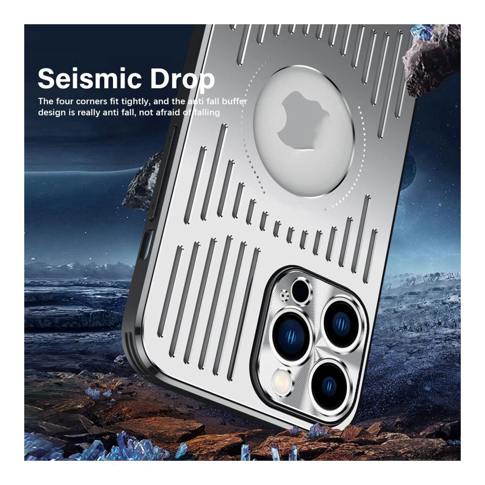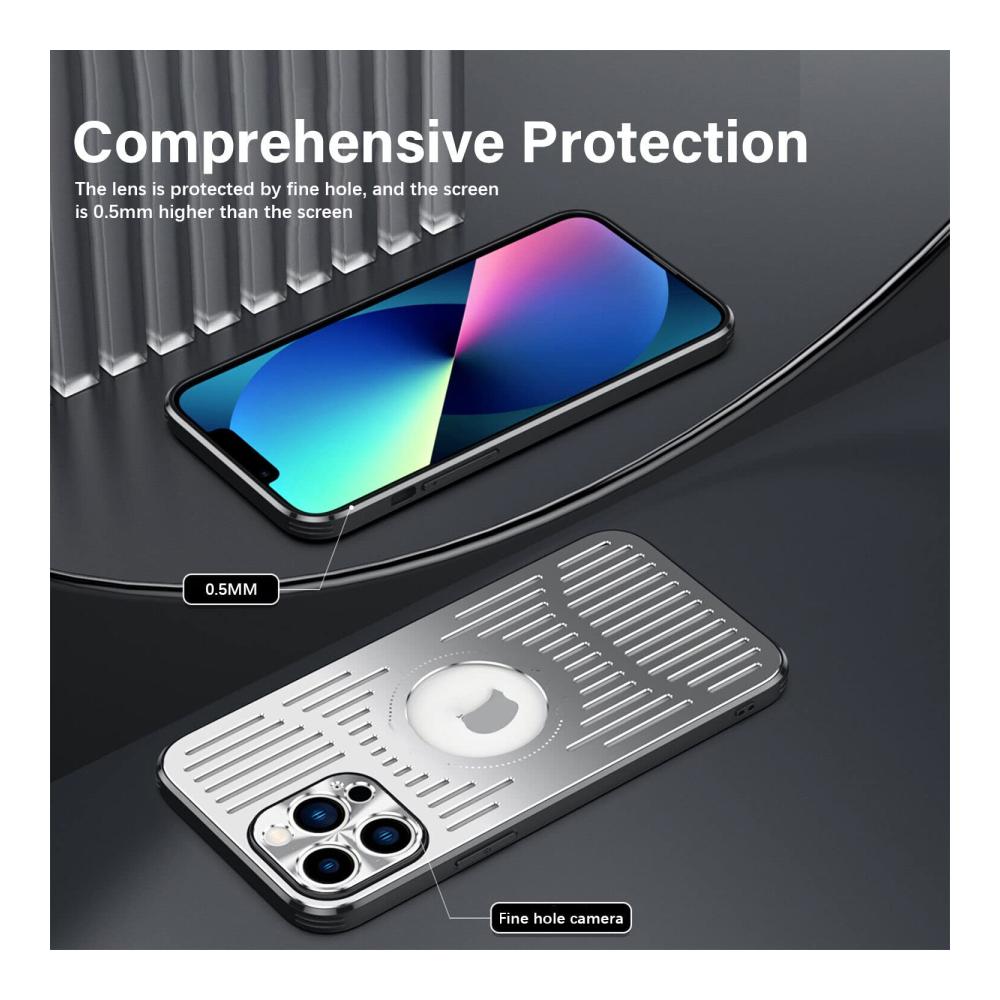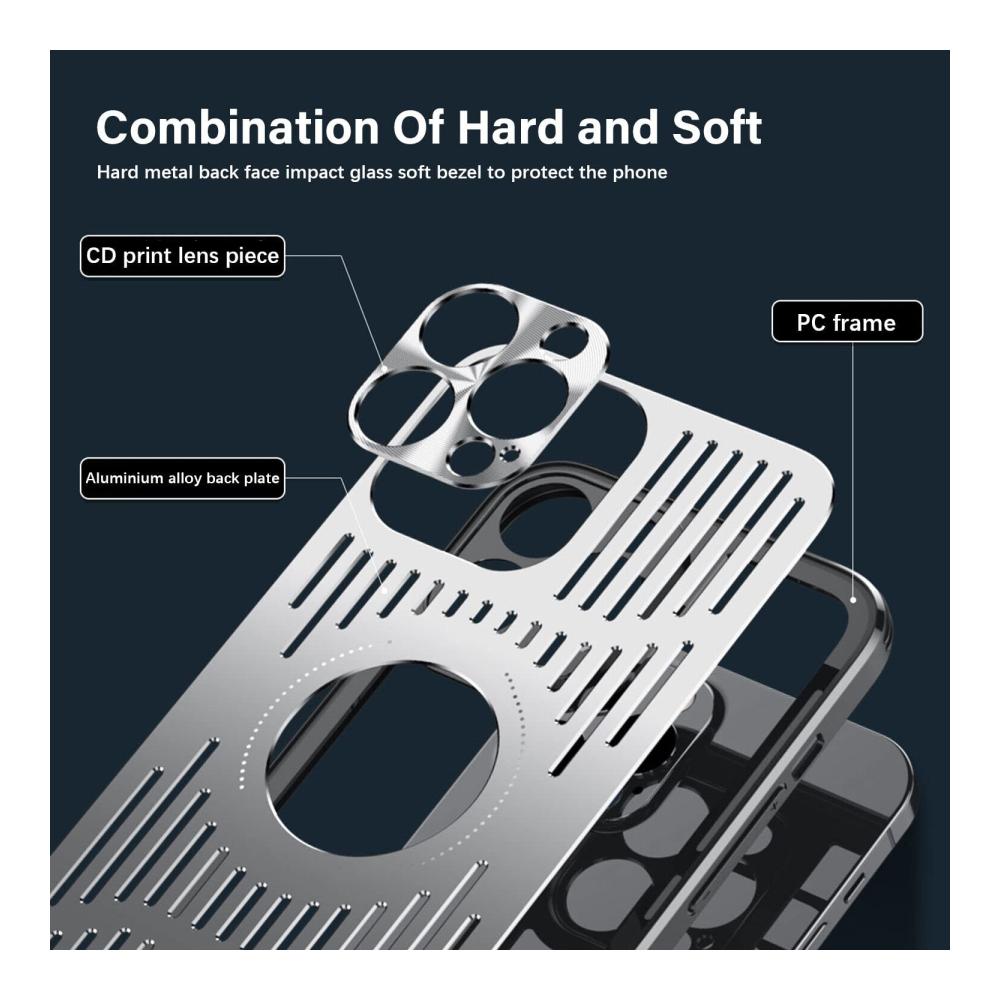 Schützen Sie Ihr iPhone 14 13 12 Pro Max mit unserem hochwertigen Standard-Aluminiumlegierung-Gehäuse. Entwickelt mit stoßfesten Ecken und einem einzigartigen Hohlraum-Design für eine effiziente Wärmeableitung und rutschfeste Funktionen. Das Gehäuse besteht aus robustem Aluminiumlegierungsmaterial, das gleichzeitig leicht und dünn ist und eine einfache Installation gewährleistet. Mit präzisen Aussparungen für alle Bedienelemente und eine erhöhte Metallrahmenkonstruktion für den Schutz von Bildschirm und Kamera.