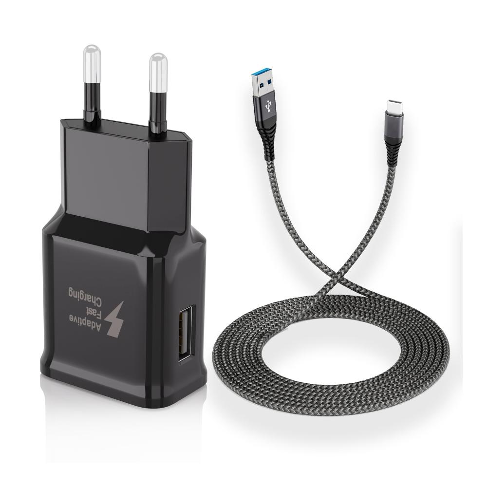 Enthaltene Komponenten : 1 x USB Ladegerät und 1 x 2m Nylon-ummantelte USB-C Kabel