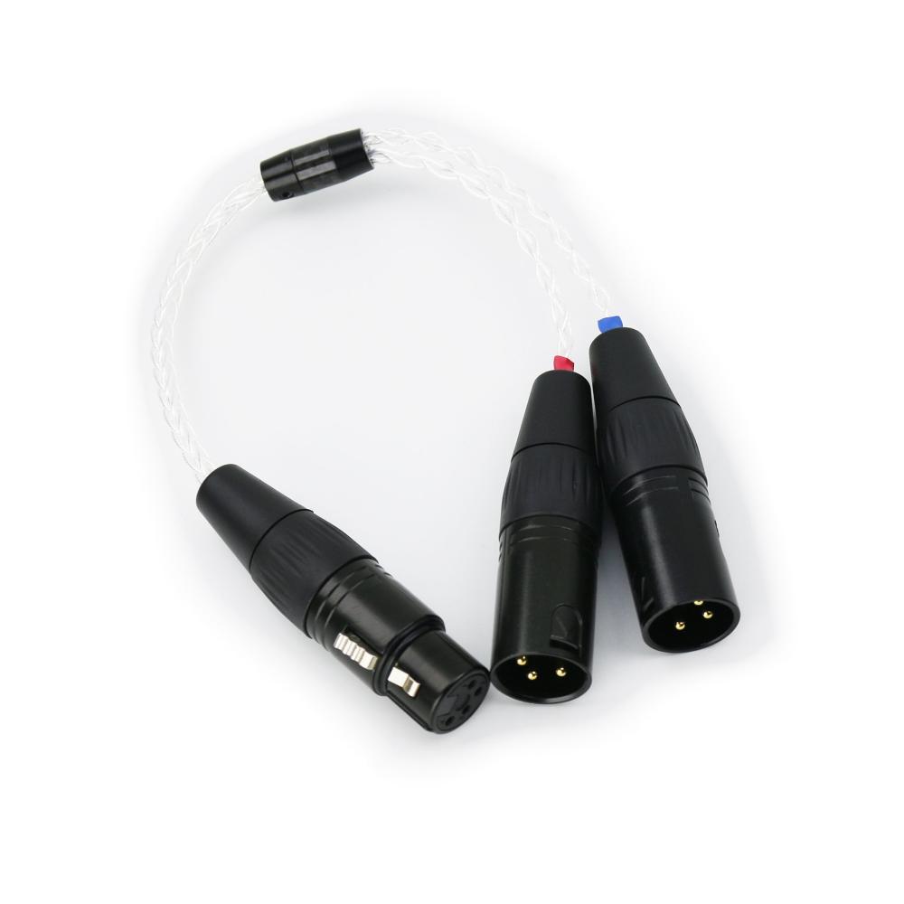 HiFi-Kabel mit 4-poliger XLR-Buchse auf 2 x 3-poligen XLR-Stecker, symmetrisch, versilbert, Kopfhörer-Audio-Adapter