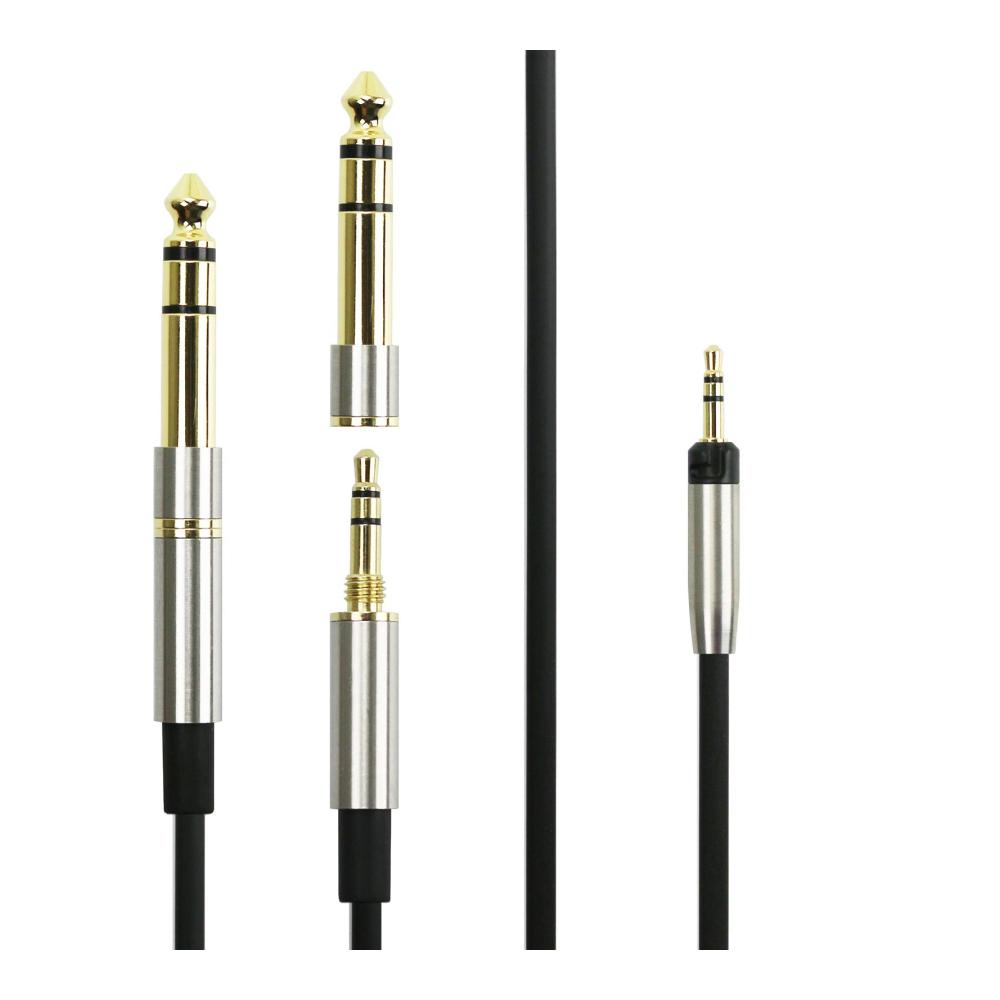 Länge: 2 m, Anschluss: 3,5-mm-Stecker und 6,35-mm-Adapter auf 2,5-mm-Stecker (wird mit dem Schloss wie das Original-Kabel geliefert), die 3,5-mm-Klinkenbuchse passt auf das Telefon mit der dickeren Hülle.