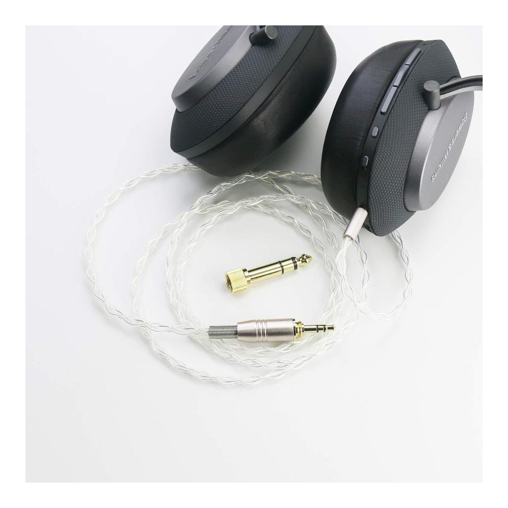 Versilbertes Ersatz-Audio-Upgrade-Kabel mit 3,5-mm-Stecker und 6,3-mm-Adapter, kompatibel mit Bowers & Wilkins PX Active Noise Cancelling kabellosen Kopfhörern