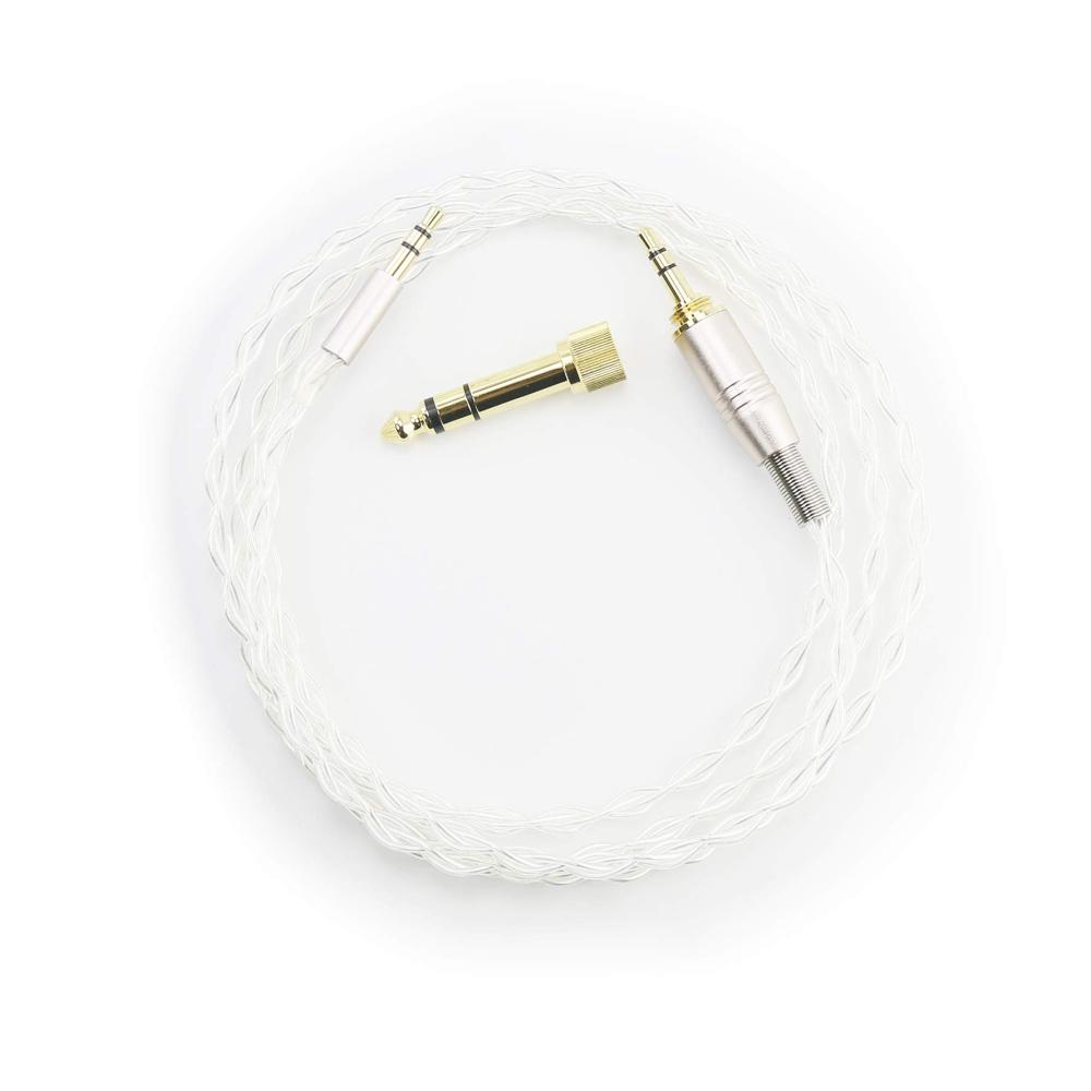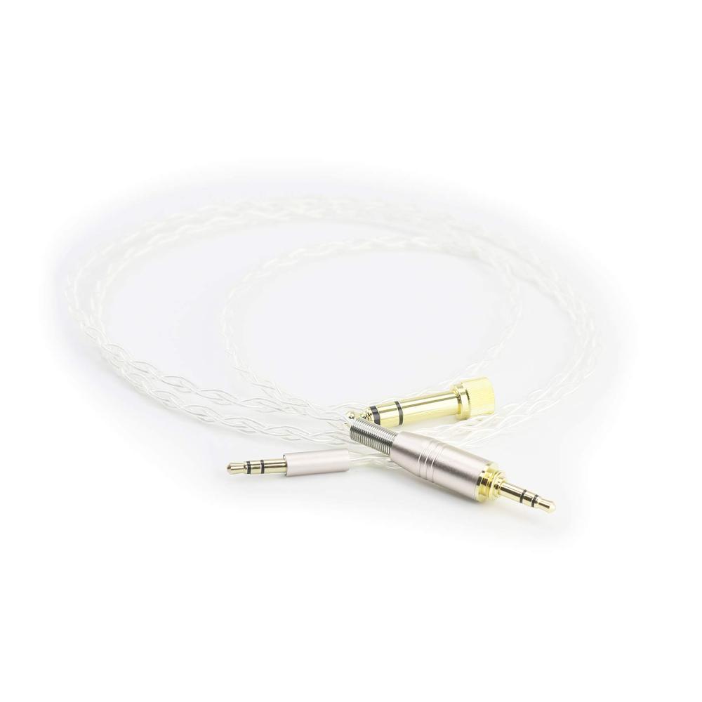Entdecken Sie das ABLET Audio-Upgrade-Kabel, das perfekt mit den Bowers & Wilkins PX Active Noise Cancelling Wireless Kopfhörern kompatibel ist. Dieses versilberte Ersatzkabel bietet eine verbesserte Audioqualität und verfügt über einen 3,5-mm-Stecker sowie einen 6,3-mm-Adapter. Erleben Sie exzellenten Klang und maximale Kompatibilität mit diesem hochwertigen Kabel in Weiß und Gold.