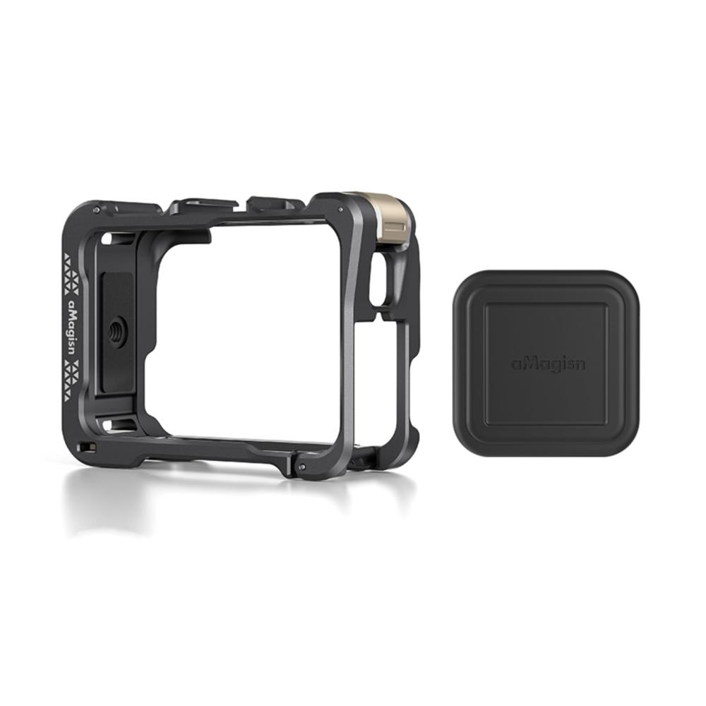 Charakteristisch: Mehrere externe Montageschnittstellen: Dual Cold Shoes machen die gleichzeitige Verwendung von Fülllicht und Mikrofonen möglich. Der Schutzrahmen für Sportkameras ist mit einer Klappenstruktur am Batteriefach ausgestattet, einfach die Klappe sanft drücken und drehen, um den Akku einfach und bequem zu öffnen und zu ersetzen. Hergestellt aus Luftfahrt-Aluminiumlegierung, wiegt aber nur 60 g, wodurch sie leicht zu transportieren und aufzubewahren ist. Egal ob Reisen oder Outdoor-Aktivitäten, es wird keine zusätzliche Belastung geben. Technische Daten: Zustand: 100% neu und hochwertig. Typ: Sportkamera-Schnellverschluss-Schutzrahmen. Material: Aluminiumlegierung. Farben: Schwarz. Menge: 1 Stück/Set. Gewicht:60G Größe: 85,5 x 64,6 x 32,8 mm. Kompatibilität: für Insta360 Ace/Ace Pro Packliste: 1 x Schutzrahmen für Sportkameras mit Schnellentriegelung. 1 x Objektiv-Silikon-Schutzhülle.