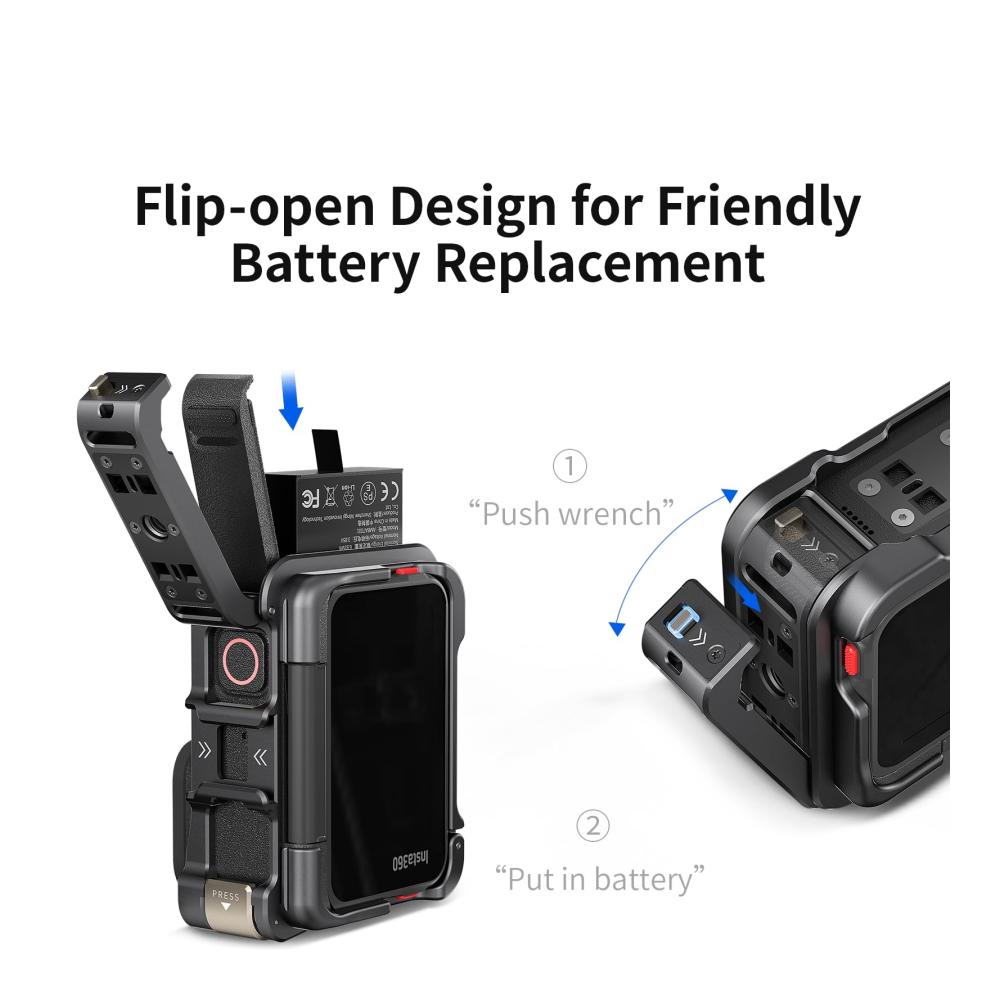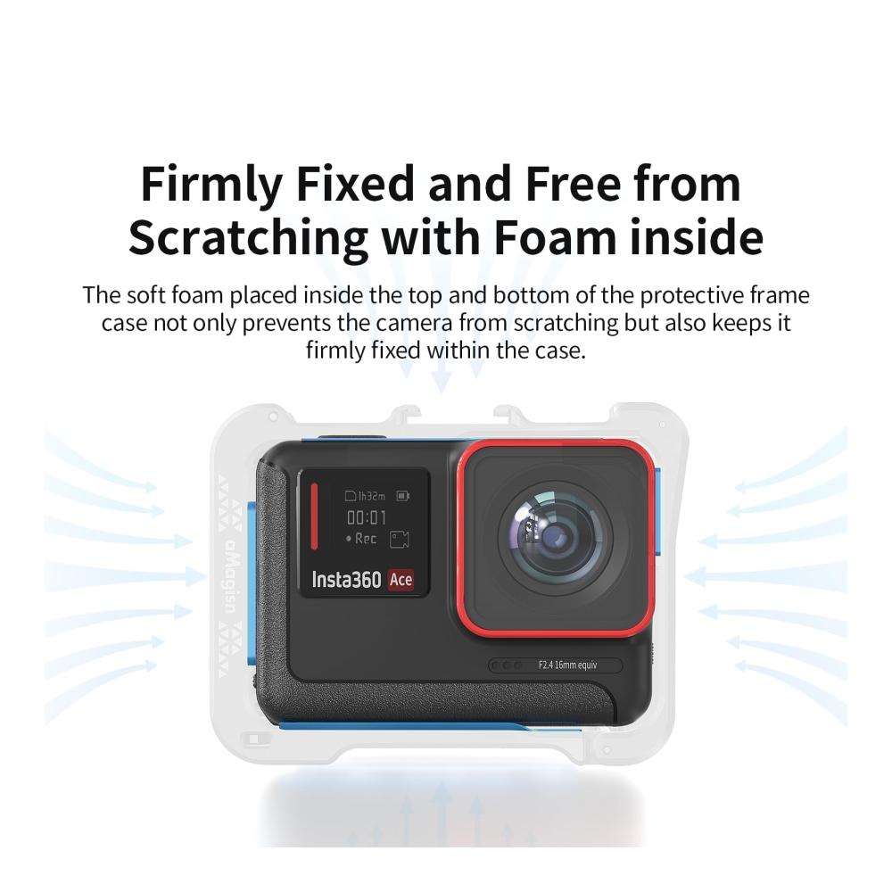 【Kompatibilität】Der Sportkamera-Schutzrahmenkäfig ist kompatibel mit Insta360 Ace/Ace Pro. Der Schutzrahmenkäfig ist nahtlos kompatibel mit der Original-Schnellspannhalterung, dem Schnellleser, dem Audio- und Ladeadapter und anderem Zubehör durch die Öffnungen, die im Bereich der USB-Abdeckung und der Unterseite der Hülle reserviert sind.