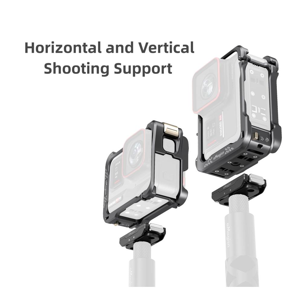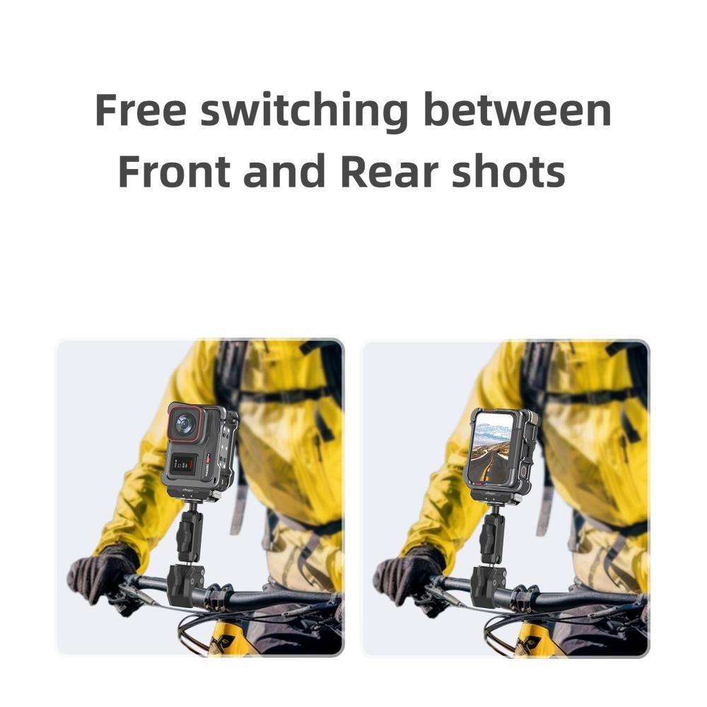 【Multi-Winkel-Aufnahmeunterstützung】 Bei horizontalen Aufnahmen wird das Schnellverschluss-Zubehör durch die Öffnung an der Unterseite des Rahmens direkt an der Action-Kamera befestigt. Der Schnellspanner-Installationsanschluss des Rahmenkäfigs nimmt ein magnetisches polfreies Design an. Bei vertikalen Aufnahmen muss die Schnellspannbasis nicht demontiert werden. Die Kamera kann zur Installation direkt um 180 ° gedreht werden, wodurch sie bequem für Frontal- und Selfieaufnahmen ist.