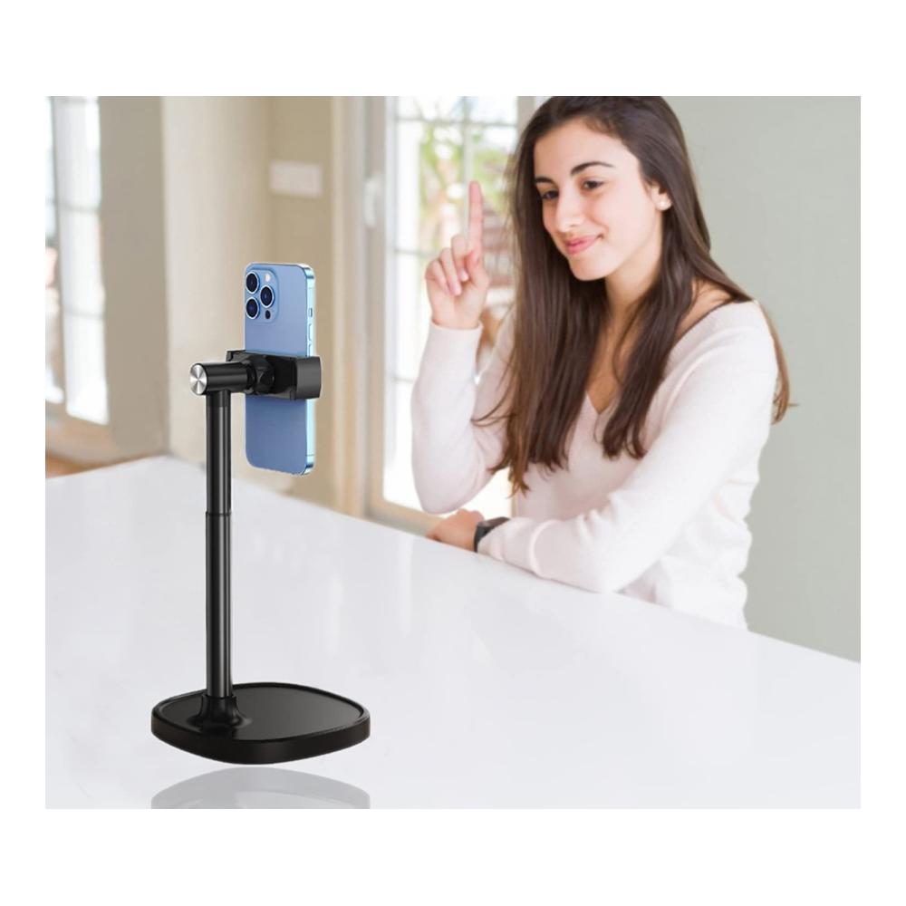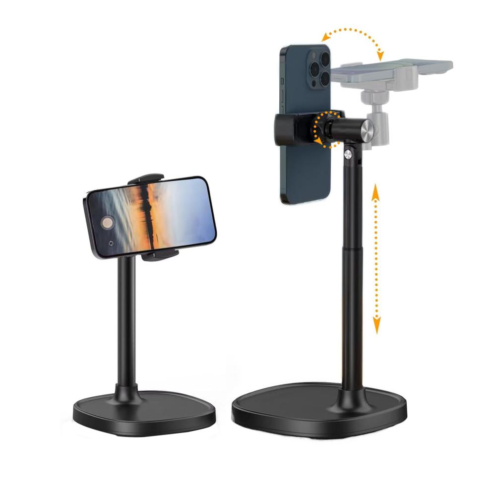Der höhenverstellbare Handy Ständer ist ein vielseitiger Tischhalter, der Ihnen ermöglicht, Ihr Smartphone in verschiedenen Winkeln zu positionieren. Perfekt für Videokonferenzen, Videoanrufe oder einfach nur zum Ansehen von Videos auf Ihrem Desktop. Mit seiner stabilen Konstruktion bietet er eine sichere Halterung für Ihr Handy, während Sie produktiv arbeiten oder entspannen.