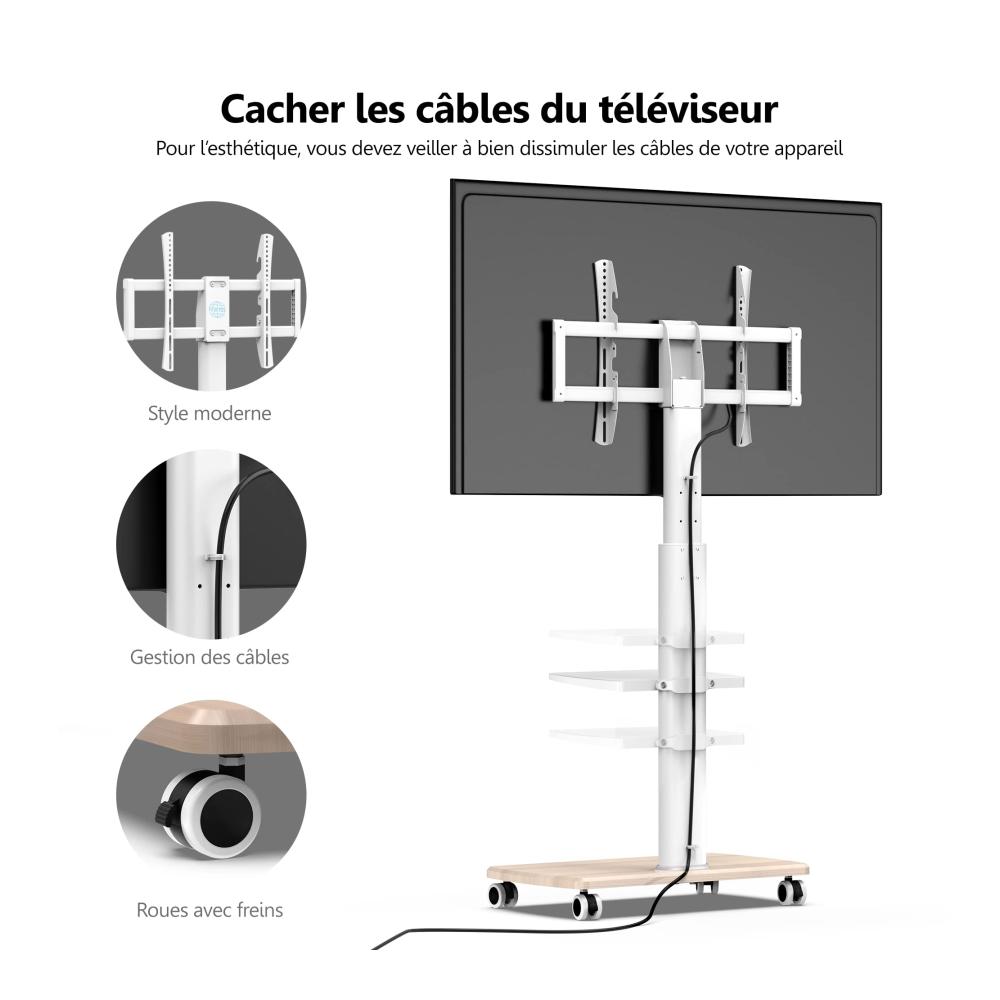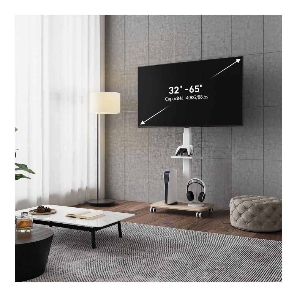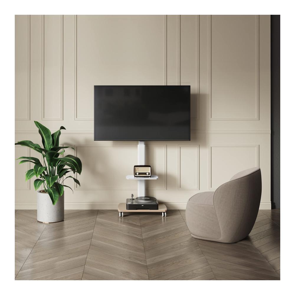 Dieser TV Bodenständer mit Rollen und Holzablage bietet eine praktische und flexible Lösung für Ihr Unterhaltungssystem. Mit der Möglichkeit der Wandmontage und Schwenkbewegung ist er ideal für Bildschirmdiagonalen von 32-70 Zoll und bis zu 40kg. Das hochwertige Holzmaterial und das weiße Design verleihen Ihrem Raum ein modernes Aussehen. Der maximale Neigungswinkel von 30 Grad ermöglicht eine optimale Betrachtung. Kompatibel mit einer Vielzahl von TV-Marken, bietet dieser Standfuß eine einfache und elegante Möglichkeit, Ihren Fernseher zu präsentieren.