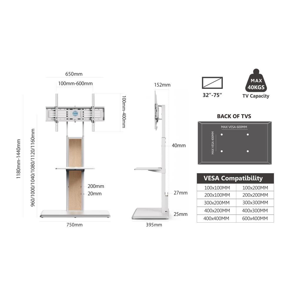 【Höhenverstellbar & Schwenkbar】Diese TV halterung ist nicht nur höhenverstellbar, sondern auch schwenkbar. Höhenverstellbar von 1380mm bis 1440mm in 12 verschiedenen Höhen. Betrachtungswinkel um 20 Grad nach links oder rechts schwenkbar.