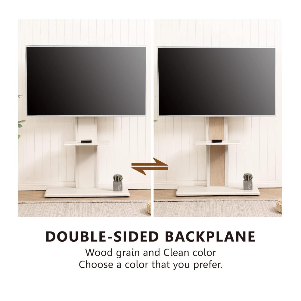 【Zweifarbige Holzpaneele】Bei diesem TV-Ständer haben die beiden Seiten der Holzpaneele in der Mitte eine andere Farbe. Einfarbig auf einer Seite, Holzmaserung auf der anderen. Wählen Sie eine Farbe, die Sie lieber.
