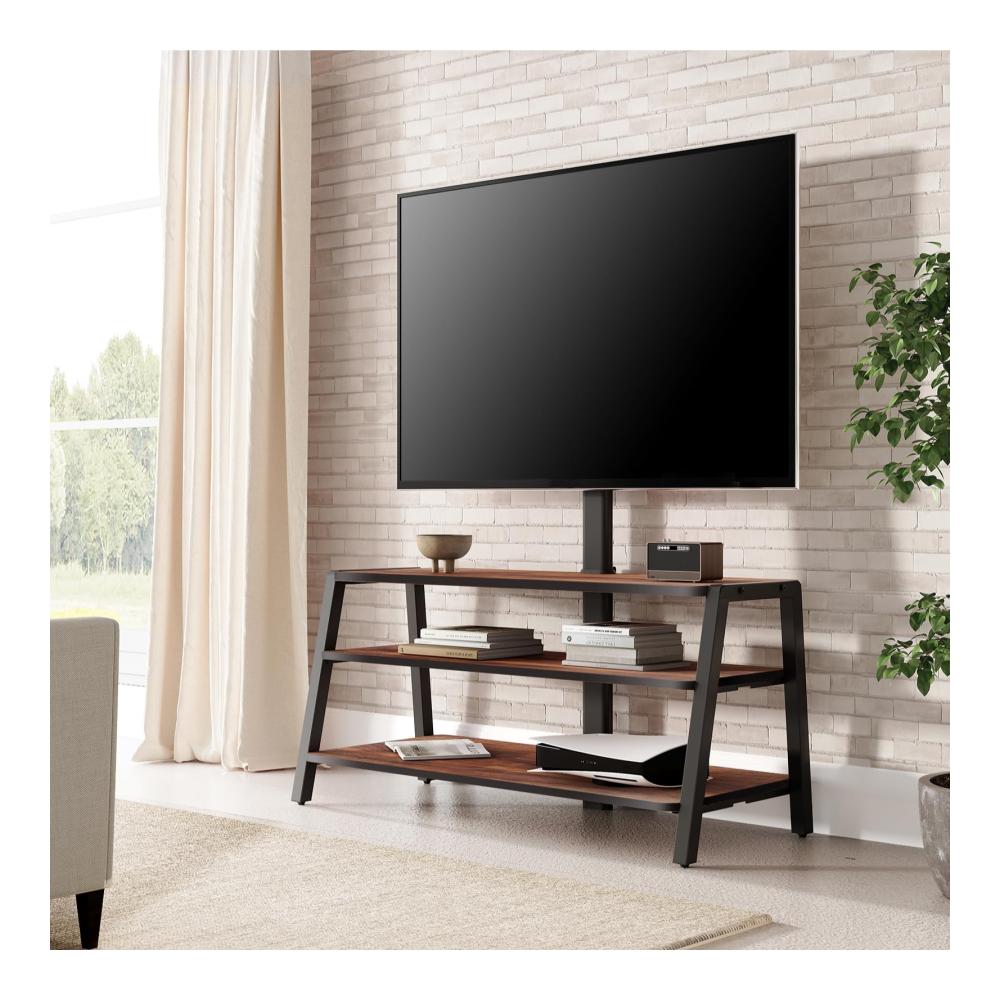 Dieser TV Schrank mit Halterung von FITUEYES ist eine innovative Lösung für Ihr Wohnzimmer. Die Verbindung von TV-Tisch und TV-Ständer macht es überflüssig, separate Möbel zu kaufen. Das elegante Design aus Metall und Holz passt perfekt zu einem minimalistischen Einrichtungsstil.