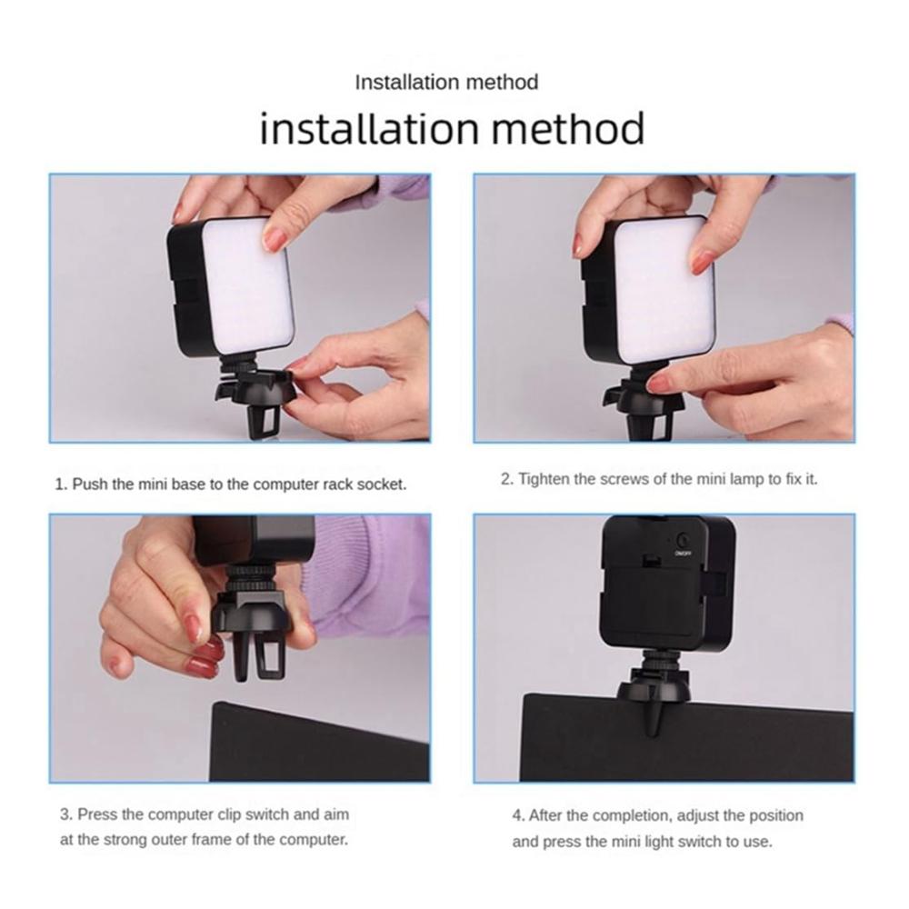 Ausgestattet mit einem Kaltschuh-Montageadapter und einem 1/4–Schraubenloch können Sie die LED-Lampe an der Kamera, dem Stativ oder anderen Geräten installieren.