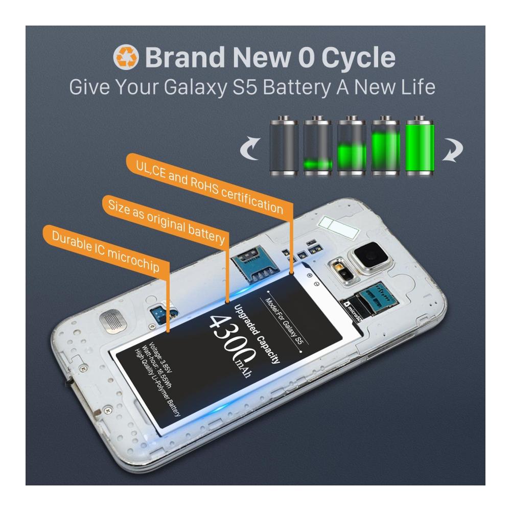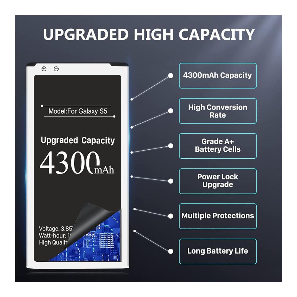 1 x 4300 mAh Samsung Galaxy S5Ersatzakku.