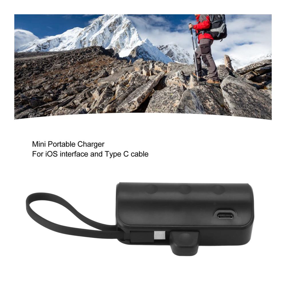 Tragbares Mini-Ladegerät – tragbares Mini-Ladegerät für den Außenbereich, Notlade-Powerbank mit Typ-C-Kabel für IOS-Schnittstelle. Spezifikation: Artikeltyp: Tragbares Mini-LadegerätLänge: 82 mm.Stromversorgungsbatterie: Lithiumbatterie (nicht im Lieferumfang enthalten)Material: ABSAnwendbares Lademodell: Für iOS-Schnittstellentelefone, Typ-C-SchnittstellentelefoneGewicht ca. 32g/1,1oz Paketliste: 1 x Mini-Ladegerät (Akku nicht im Lieferumfang enthalten).