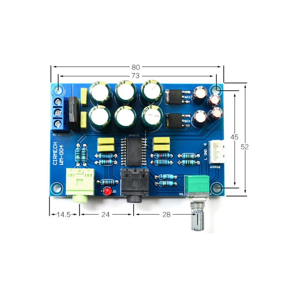 Jenbnoau Das Ampboard AC und DC Dual Power Supply 12-24V ist vorhanden, der Schub ist sehr groß, 600 Euro Kopfhörer sind nicht zu vergessen.1% Präzisionswiderstand, hochwertiger Fieberkondensator, ultra- geringes Rauschen und breites Schallfeld, gute Trennung von linkem und rechtem Kanal.Produktname: TPA6120 KopfhörerverstärkerplatineChiptyp: TPA6120A2Eingangsspannung: Dual AC12-24V (empfohlen Dual AC12V 30W )Ausgangsimpedanz: 8-600 OhmSchutzfunktion: Kurzschlussschutz, ÜbertemperaturschutzGröße: 80 x 52 x 19MMFarbe: wie abgebildetMaterial : ABSVerpackungsinhalt:1 x KopfhörerverstärkerplatineNur der oben genannte Paketinhalt, andere Produkte sind nicht enthalten.Hinweis: Wegen der Lichtstrahlung und Bildschirme könnte der Farbeton in den Fotos sowie des tatsächlichen Produkts etwas unterschiedlich sein. Der erlaubte Messfehler ist /- 1-3 cm.