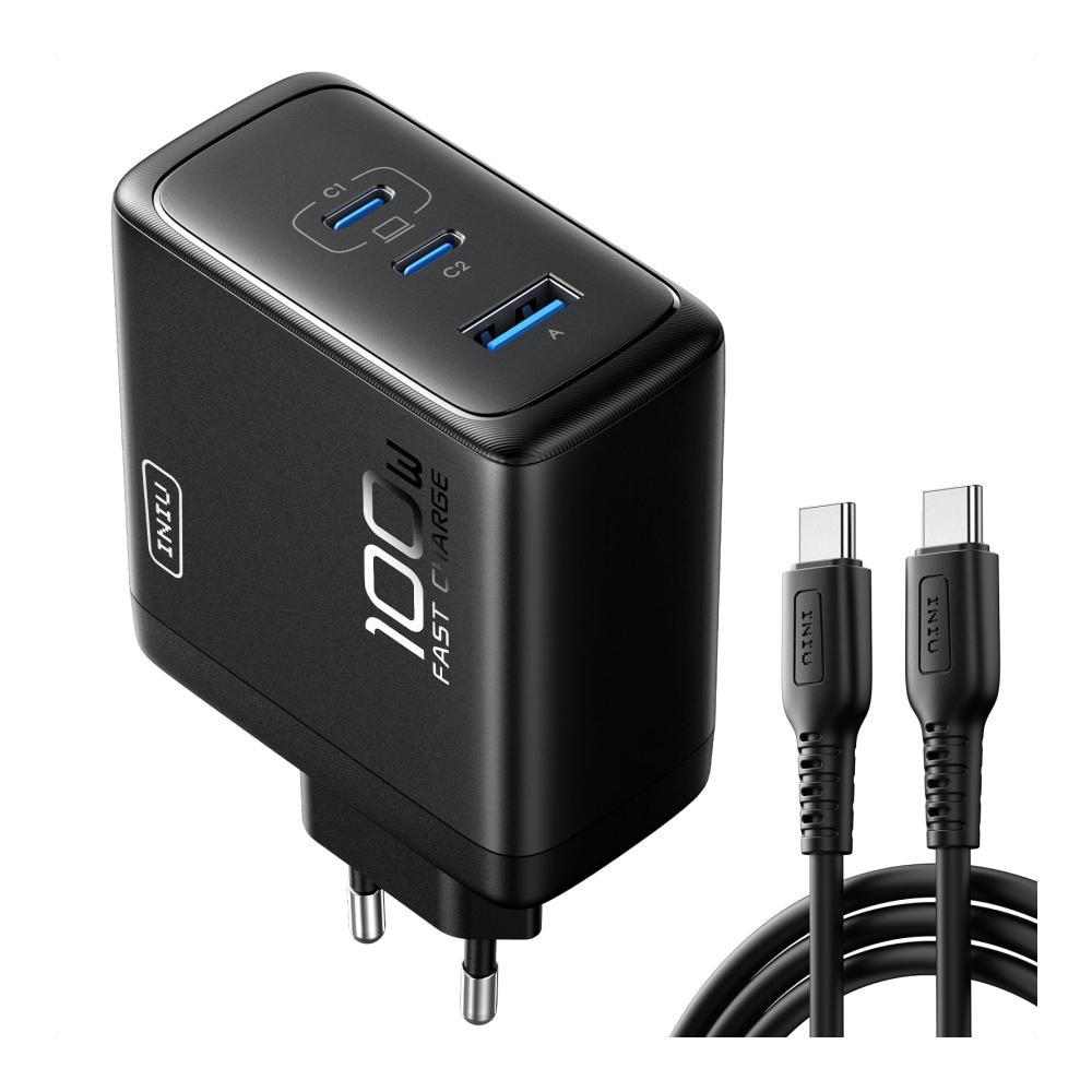 The [100W USB C Ladegerät 3-Port USB-A 2*USB-C Netzteil GaN II Tech Schnellladegerät Charger Kompakt Platzsparend für Loptop MacBook iPad Pro/Air iPhone 15 14 13Pro Max Samsung S24/S23 Ultra usw] by INIU is a versatile charging solution designed to meet the needs of various devices. With 100W power output, this charger provides fast and efficient charging for your devices. Equipped with three USB ports, including two USB-A and two USB-C ports, it allows you to charge multiple devices simultaneously. Its GaN II technology ensures high efficiency and reliability.